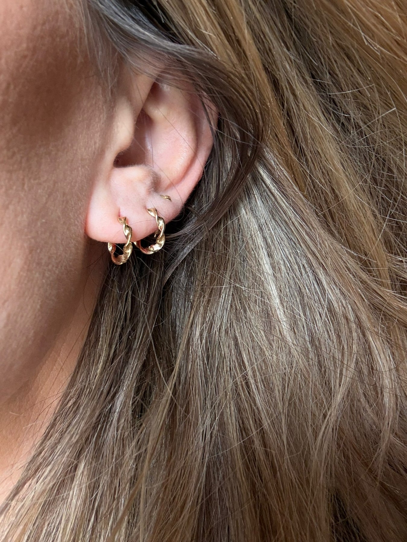Andcopenhagen præsenterer Ditte hoop-øreringe, et raffineret smykke til den moderne kvinde. Disse snoede hoops er skabt med omhu og præcision. Øreringene har en skinnende overflade og et sofistikeret twist-mønster, der gør dem velegnede til forskellige outfits. Den gyldne farve giver øreringene et eksklusivt udtryk, der kan supplere enhver smykkesamling.