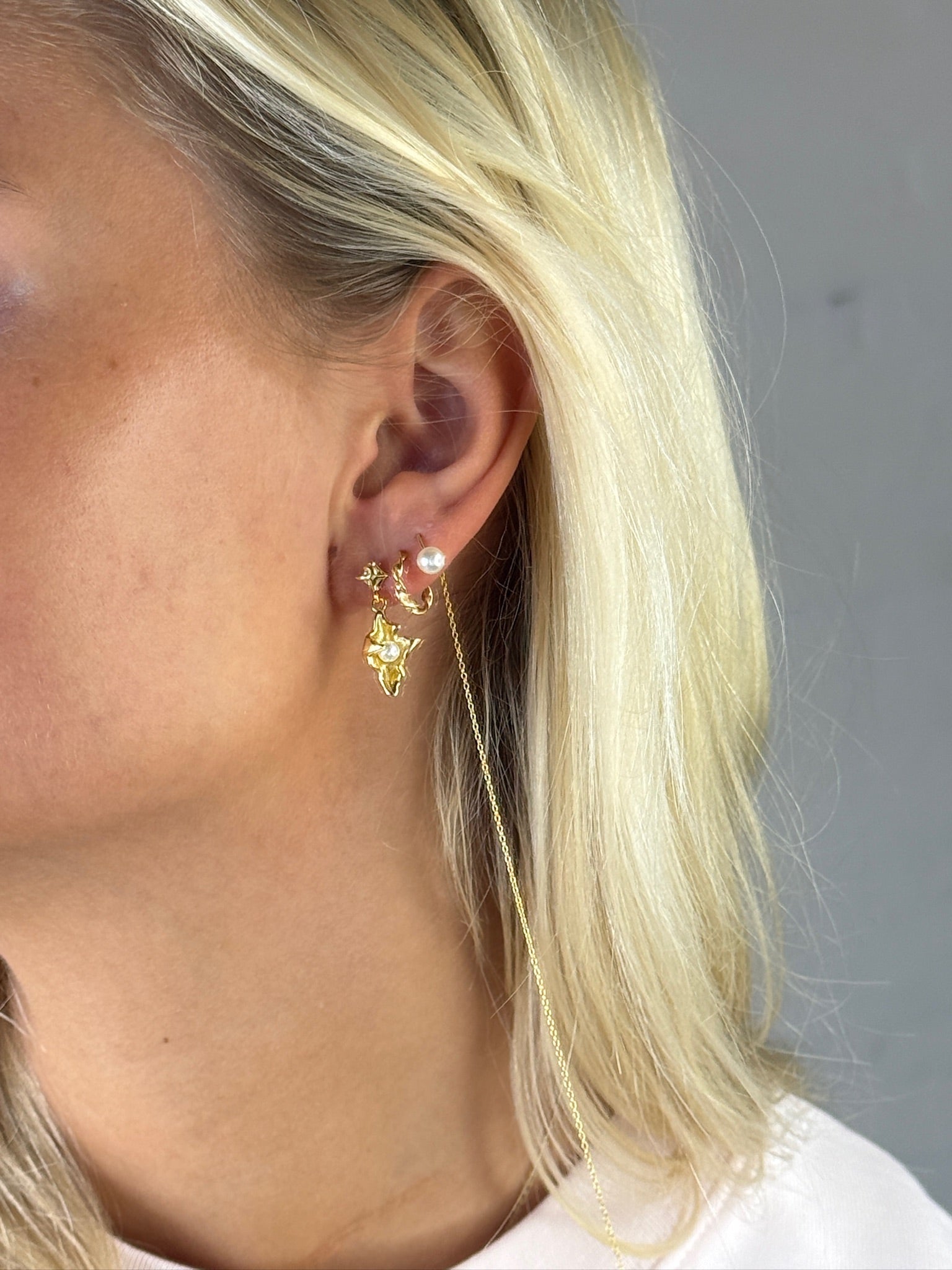 Med en diameter på 1,4 cm er disse øreringe designet til at passe til forskellige stilarter. De kan bæres alene for et enkelt udtryk eller kombineres med andre øreringe for et mere personligt look. Den gyldne farve harmonerer med forskellige hudtoner og outfits. Øreringenes design er skabt med fokus på både æstetik og funktionalitet, hvilket gør dem til et praktisk valg til hverdagsbrug såvel som festlige anledninger.