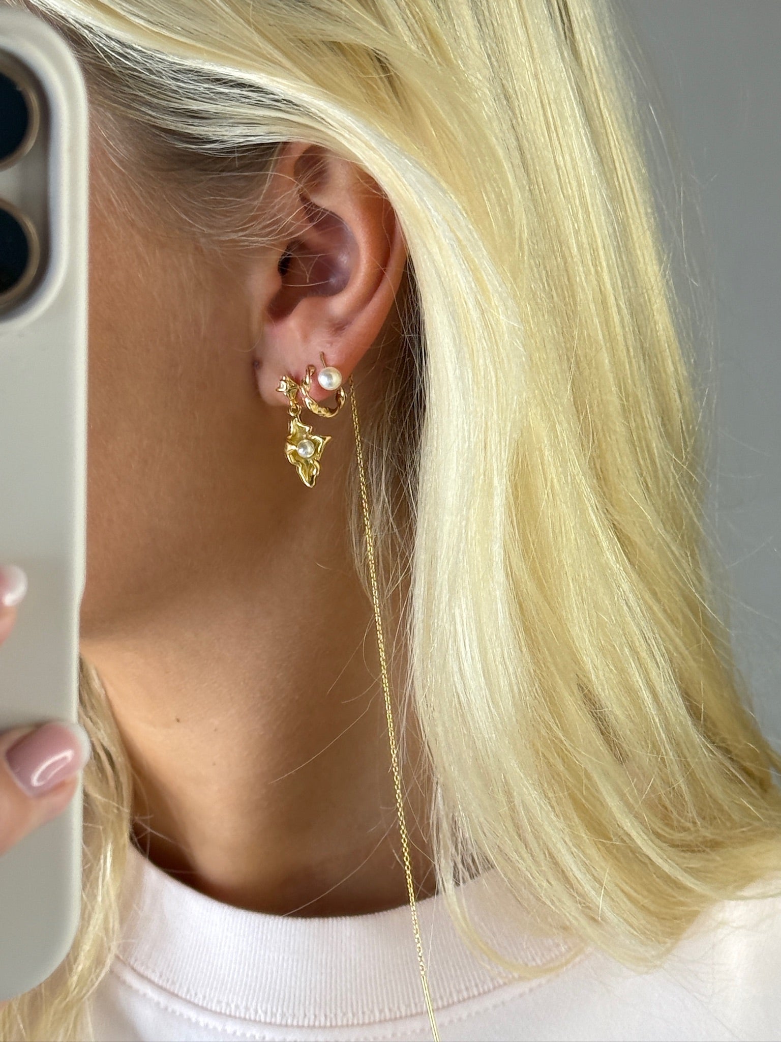 For at bevare dine Ditte hoop øreringes udseende længst muligt, anbefaler vi at undgå direkte kontakt med fugt og væske. Korrekt pleje hjælper med at opretholde guldbelægningens kvalitet over tid. Det er vigtigt at opbevare øreringene tørt og sikkert, når de ikke er i brug, for at beskytte deres finish. Med omhyggelig behandling kan disse øreringe bevare deres skønhed i lang tid.