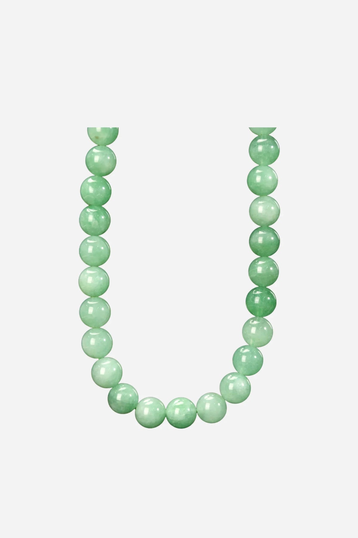 Halskæde med glansfulde jadeitperler i en enkelt række. Den justerbare længde på 35-40 cm giver mulighed for at tilpasse halskæden til forskellige halsudskæringer.