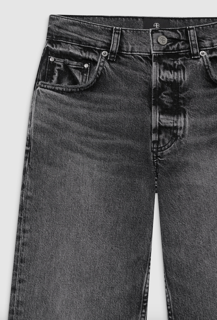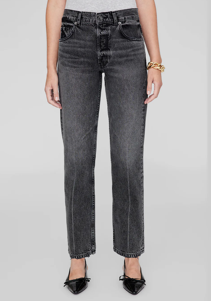 Kate Jean er lavet af et mellemtykt 100% stift bomuldsdenim uden stræk i en koksgrå vask med vintage-inspireret slibning og slidte områder over det hele. Denne hverdagsstil vil blive mere afslappet over tid og har en knaplukning og lige ben med en ren, ankellang kant.