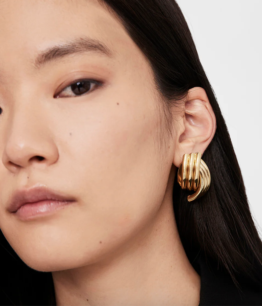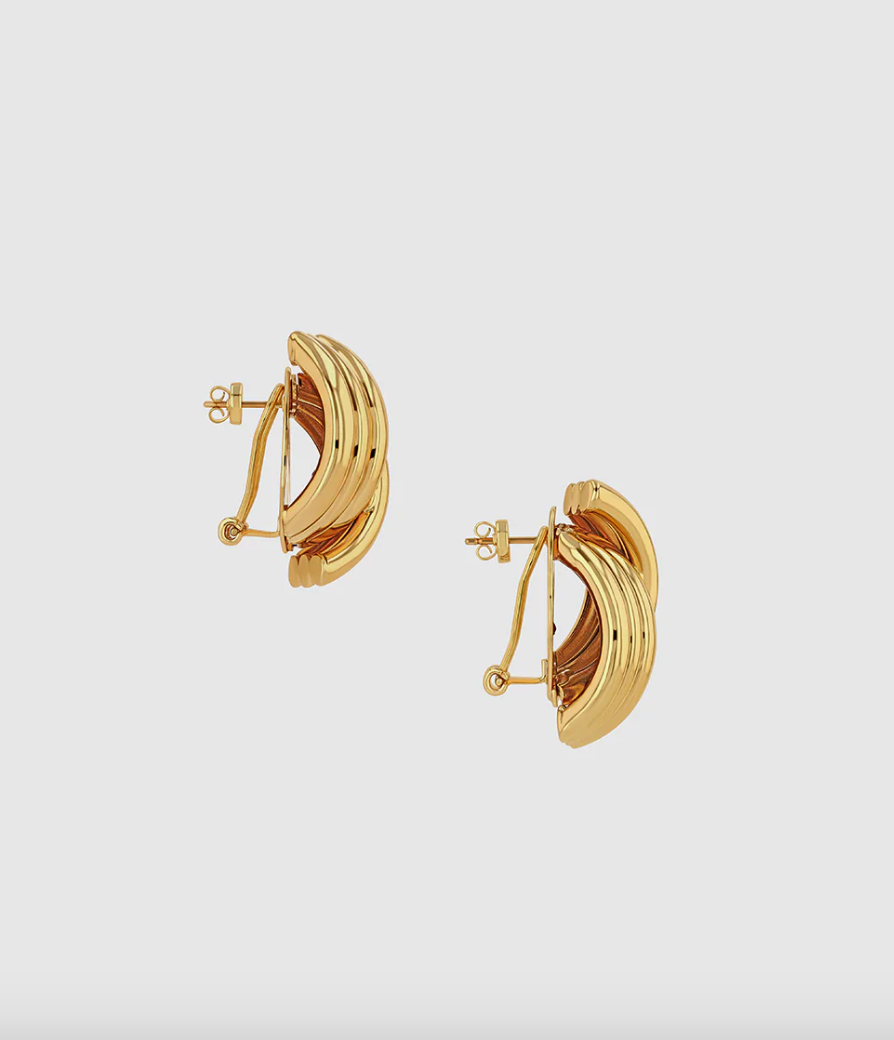 Krydsribbed øreringe lavet af 14k guldbelagt messing. Kommer med en traditionel clip-back lukning og sommerfuglebagstykker med diskret ANINE BING branding.