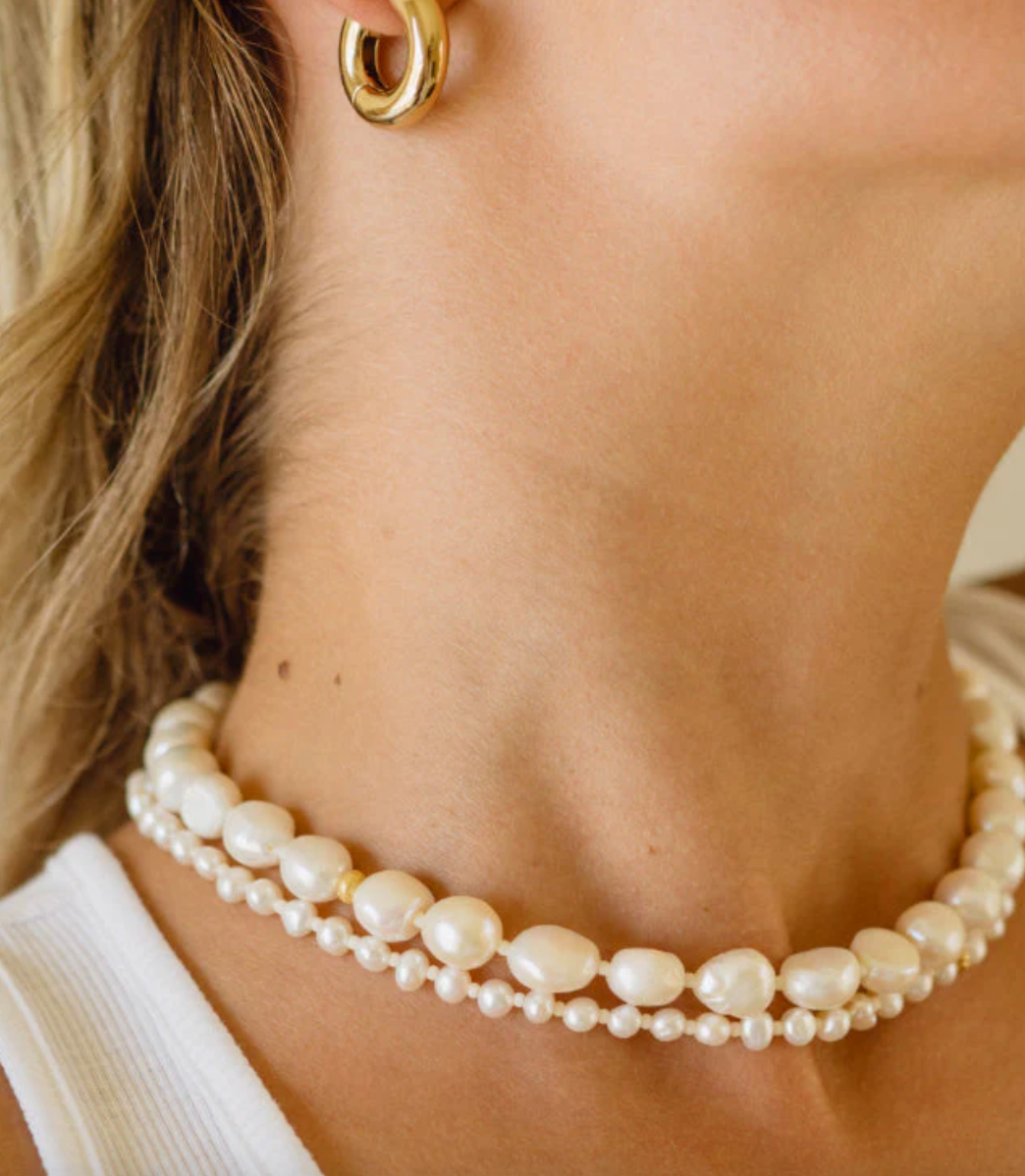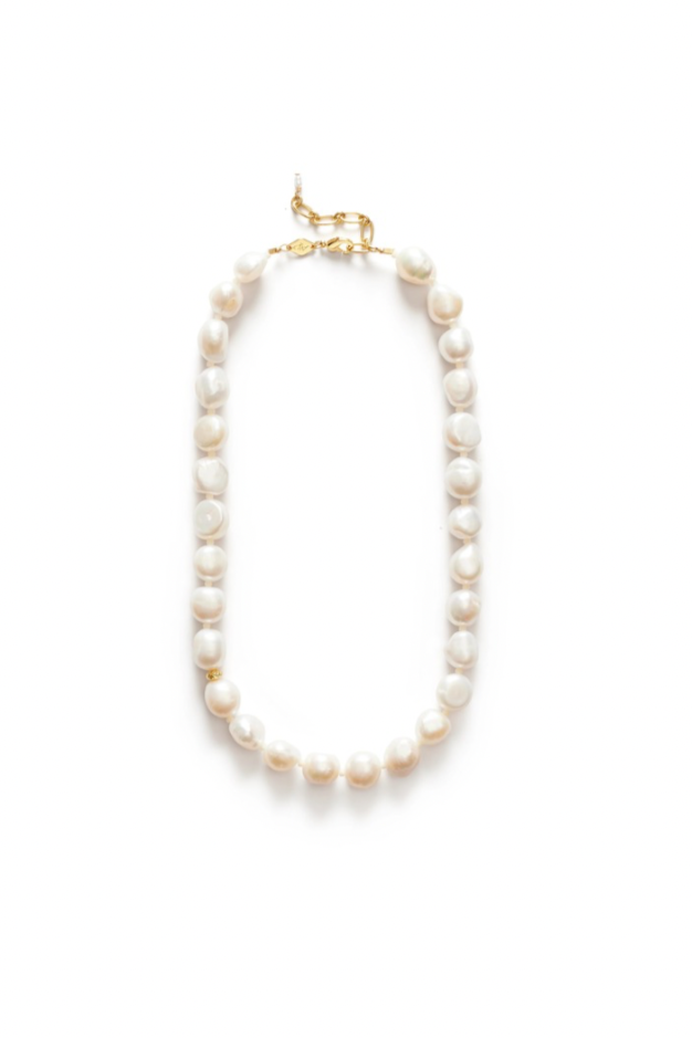 Lavet af messing med 18-karat guldbelægning og e-coating Detaljeret med glasperler og kultiverede ferskvandsperler Halskæden justeres fra 40 - 43 cm Afsluttet med en lobster clasp og en kultiveret ferskvands-risperle