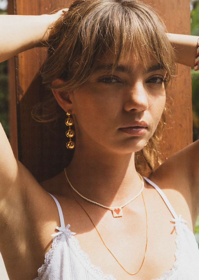 Med sit chunky og minimalistiske design kombinerer Hi Ho Gold øreringe tidløs elegance med et moderne udtryk. Den er raffineret nok til at løfte ethvert hverdagslook – og samtidig iøjnefaldende nok til at skabe opmærksomhed på en aften ude. Et statement smykke med balance mellem styrke og stil.