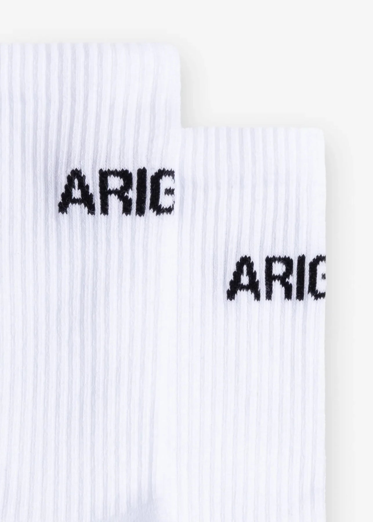 Arigato Logo tubestrømperne er fremstillet af en blød økologisk bomuldsblanding med ekstra stræk. Kontrastfarvede logo-intarsiaer fuldender dette par