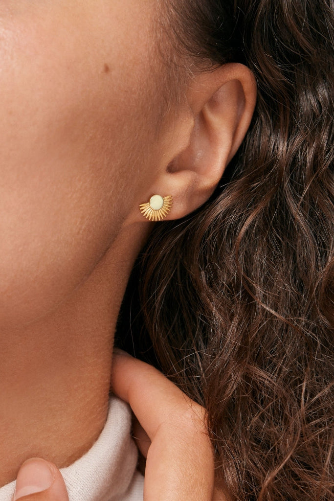 Disse fine studs i guldbelagt genanvendt sterlingsølv har et elegant og tidløst design, der passer perfekt til enhver kvinde. Disse øreringe fra Enamel er lavet med fokus på bæredygtighed og kvalitet, hvilket gør dem til et smukt, miljøbevidst valg til hverdag eller særlige lejligheder.