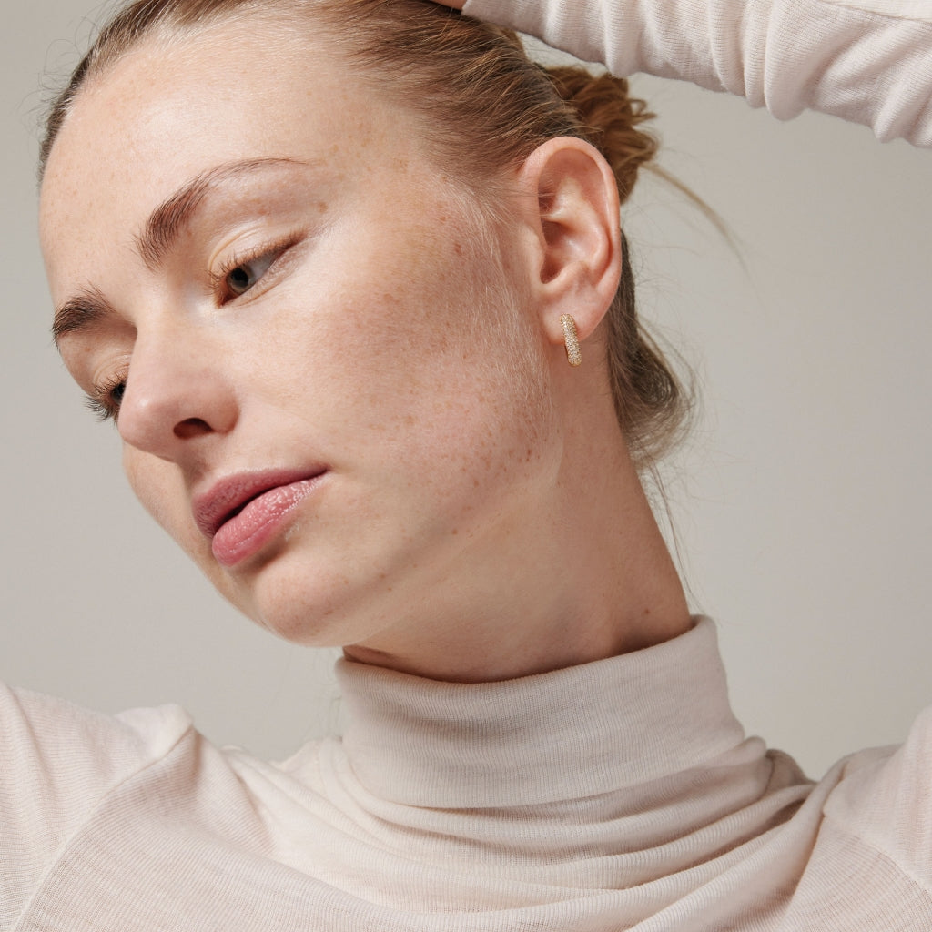 Sparkling square hoops fra Enamel, er en serie af funklende, eksklusive hoops i en anderledes form, der giver en ellers sofistikeret hoop et råt og karakterfuldt udtryk.