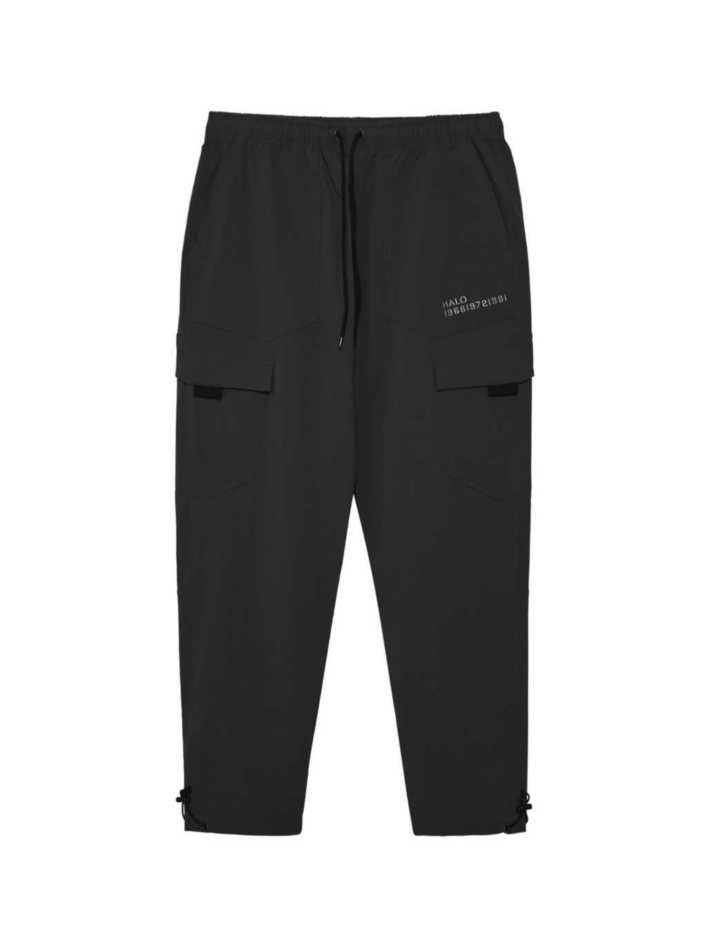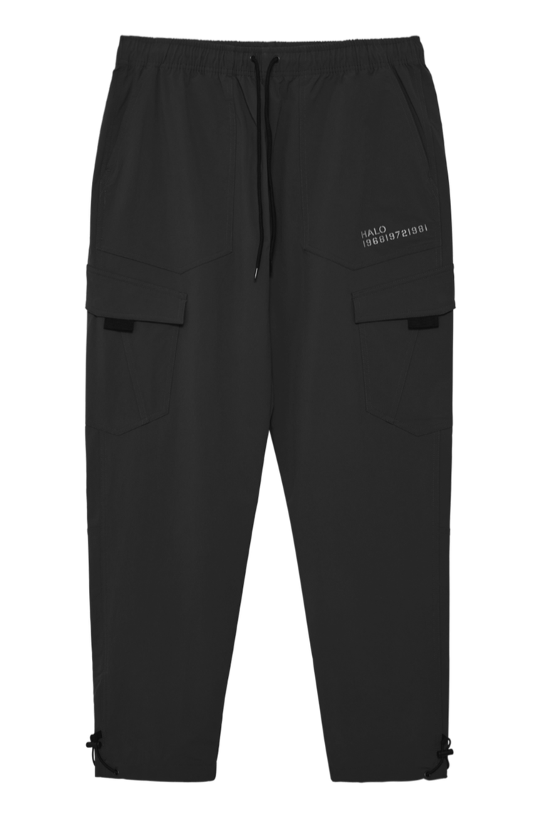 HALO TRAIL PANTS er fremstillet af vandafvisende vævet stretchstof, og har en justerbar snøretalje og ankelkanter. To sidelommer sidder på hofterne og to cargolommer på benet.