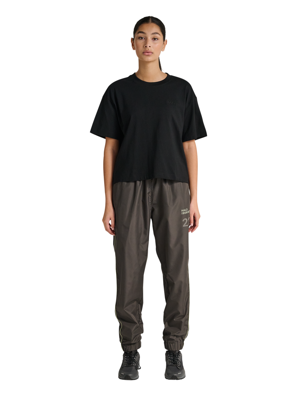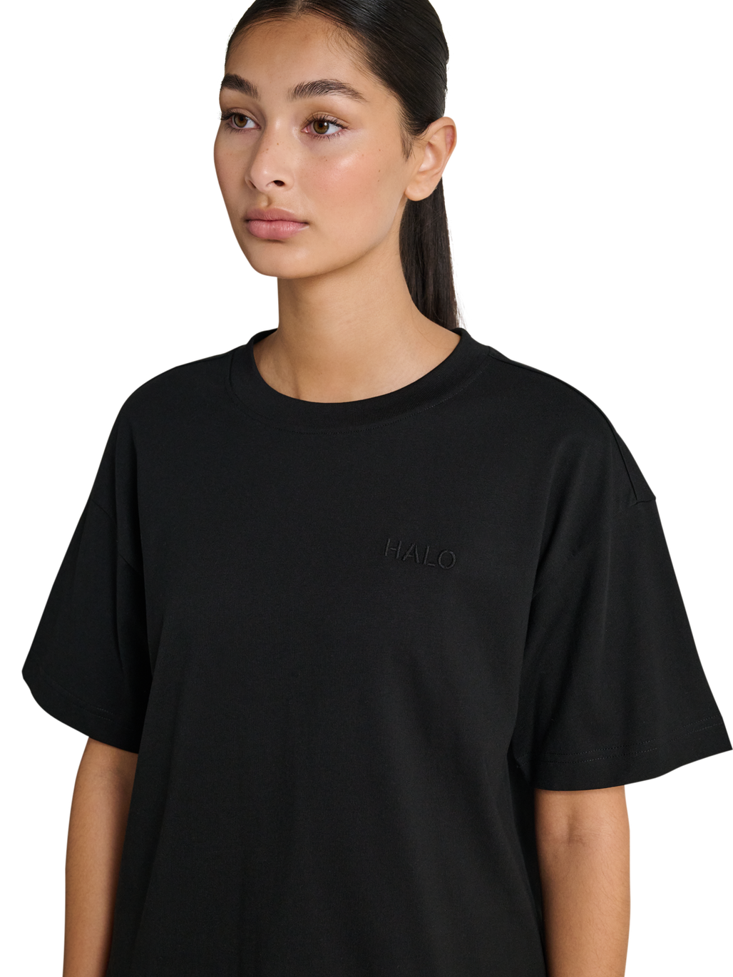HALO WOMEN LOGO T SHIRT i sort er en moderne essential, skabt til en afslappet og tidssvarende stil. T-shirten er produceret i 100% økologisk bomuld og udført i en kraftig 220g/m² heavy cotton kvalitet, som giver ekstra tyngde og holdbarhed.