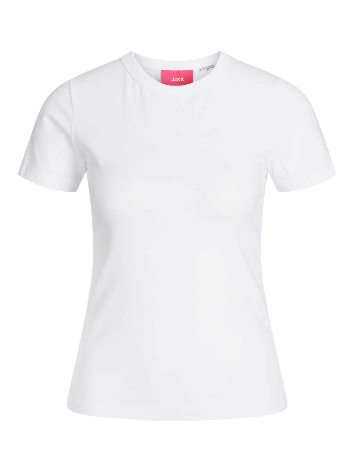 Klassisk JJXX t-shirt i Bright White med rund halsudskæring. Det strækbare materiale tilpasser sig din kropstype og gør t-shirten behagelig at have på hele dagen.