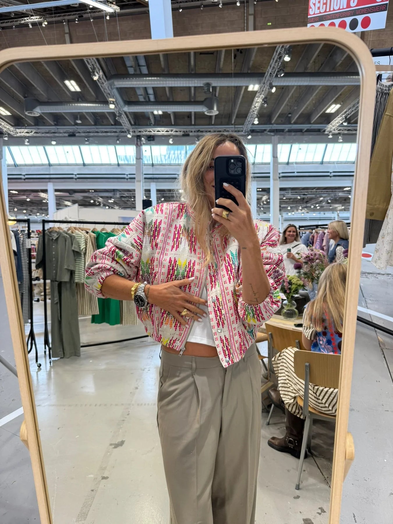 Lama bomberjakke er en farverig jakke, der giver dit look et personligt twist. Det smukke, vævede mønster i klare nuancer skaber et kunstnerisk og levende udtryk, som gør jakken til et ægte statement piece. Den lette og behagelige kvalitet gør den ideel til lag-på-lag – perfekt over kjoler, skjorter eller en simpel tee, både til hverdag og særlige anledninger.