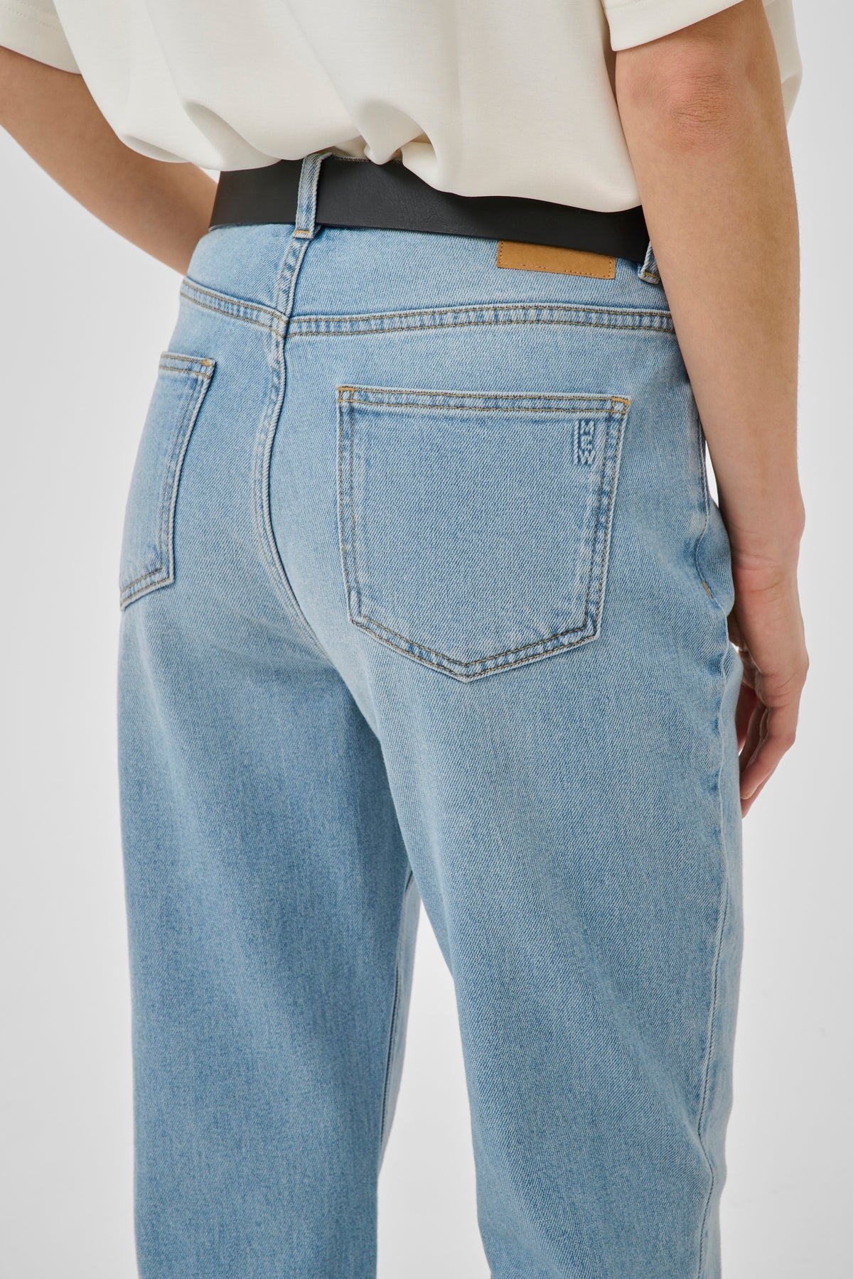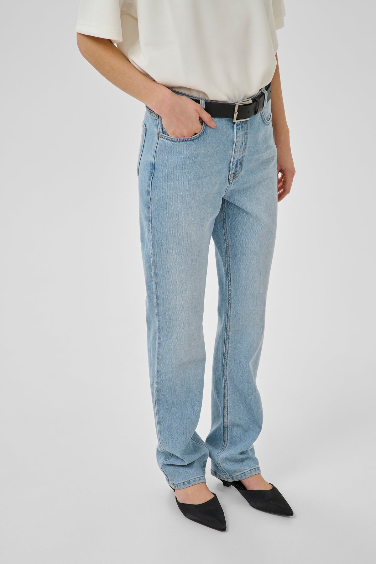 Jeansene er designet med klassiske fem lommer, bæltestropper samt lynlås- og knaplukning. Materialet føles behageligt og giver en flatterende pasform, der sidder pænt uden at stramme. The Isa jeans er et sikkert valg i basisgarderoben og kan styles med alt fra en enkel t-shirt og sneakers til en skjorte og loafers.