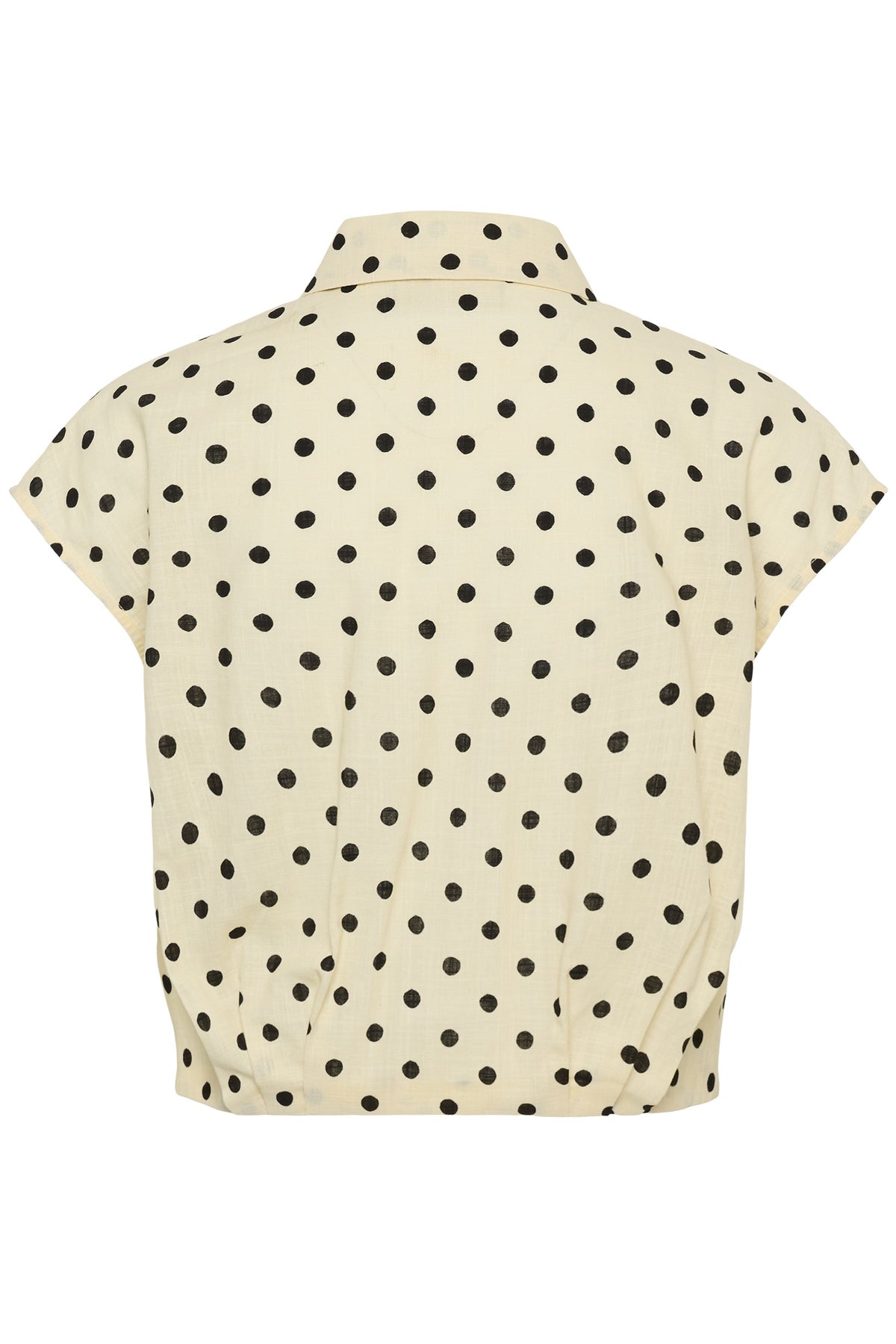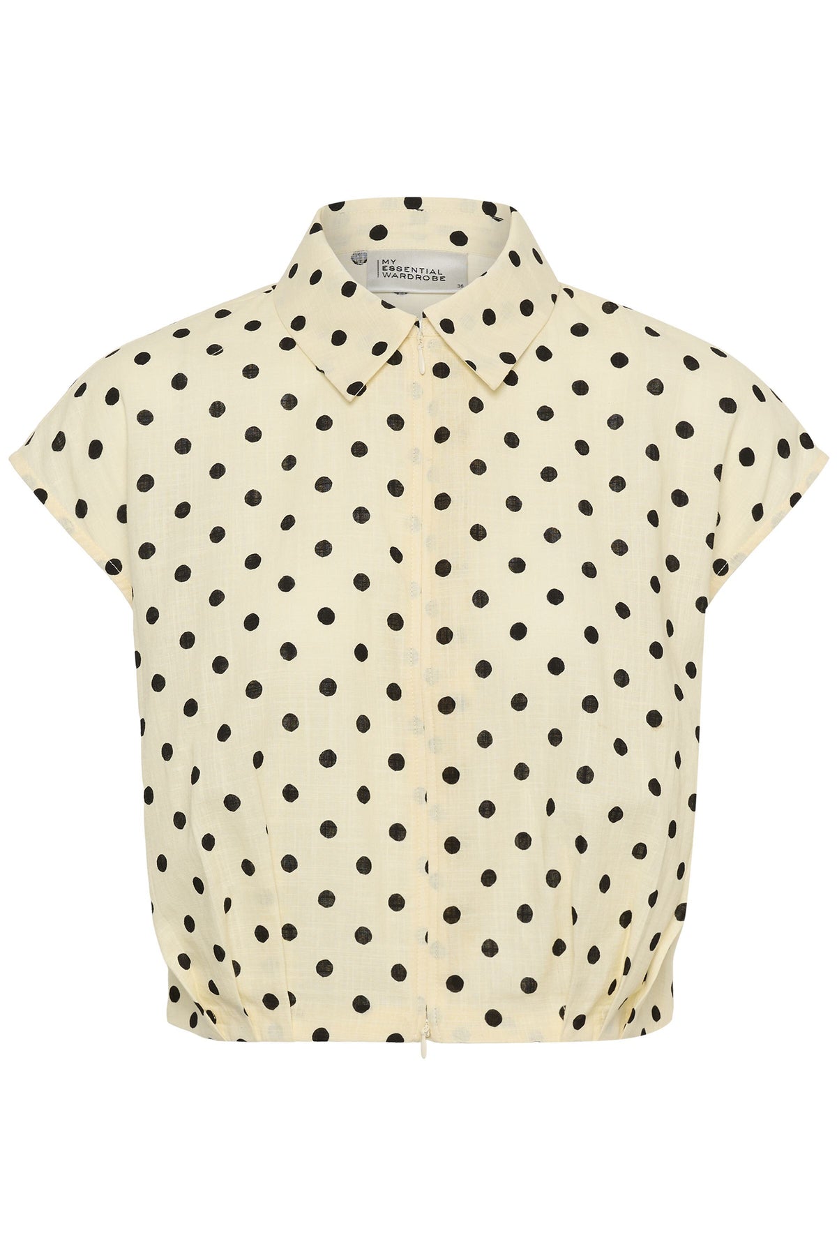 Nada skjorte fra My Essential Wardrobe i en let og sommerlig kvalitet. Skjorten er designet i en blød lysegul nuance (Lemon Icing) med sorte prikker, der giver et klassisk og feminint udtryk. Den har en gennemgående lynlås fra hals til bund foran, som tilføjer et moderne og funktionelt twist.