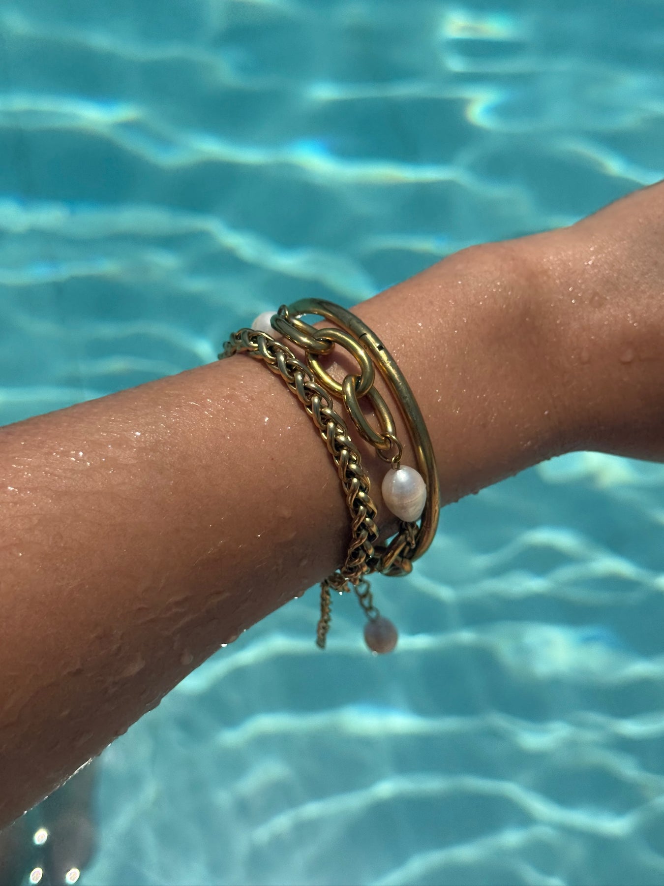 Dette armbånd fra NINE kombinerer store kædeled med perler. Det er fremstillet af holdbare materialer og er 100 % nikkelfrit, så du trygt kan bære det til enhver anledning.