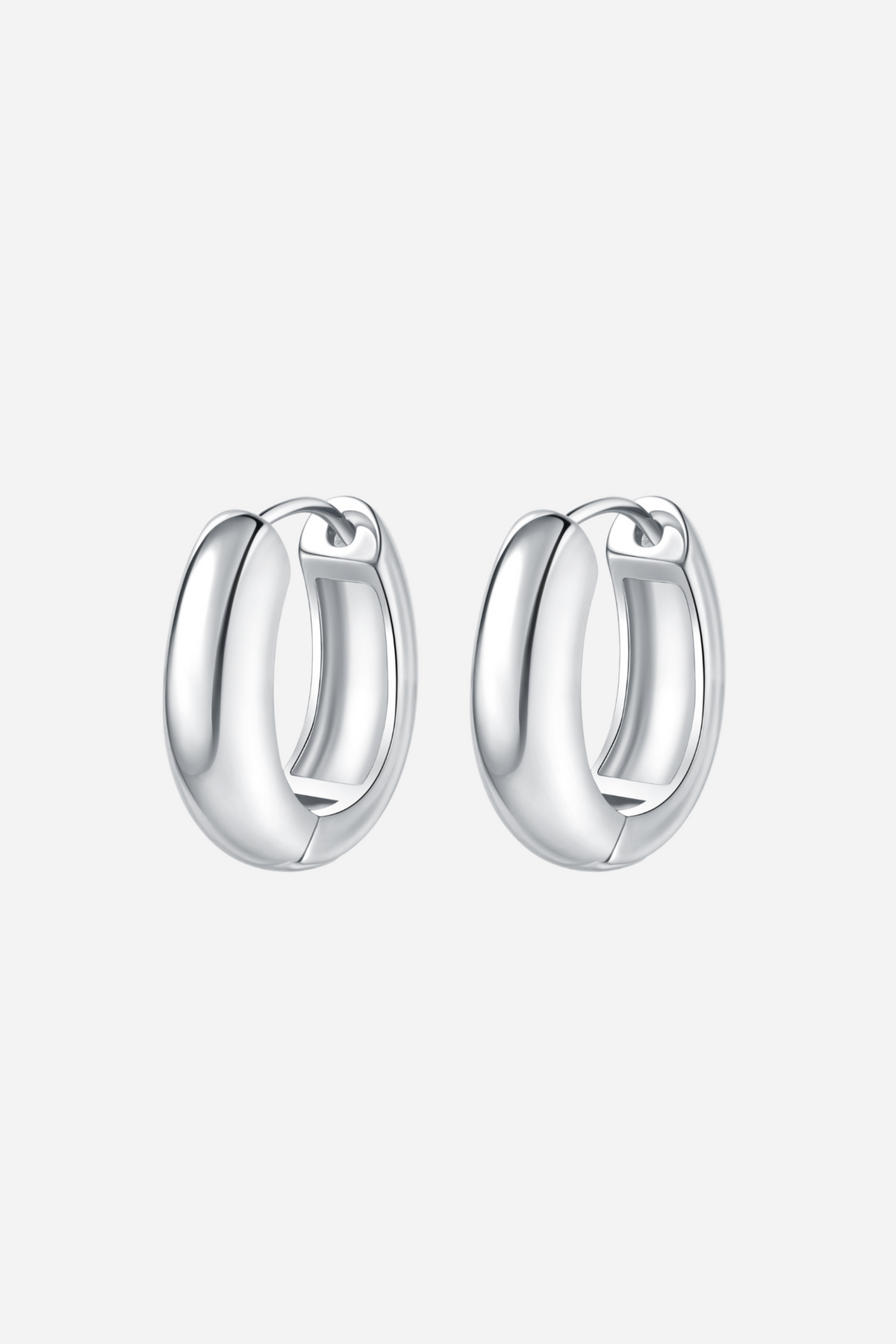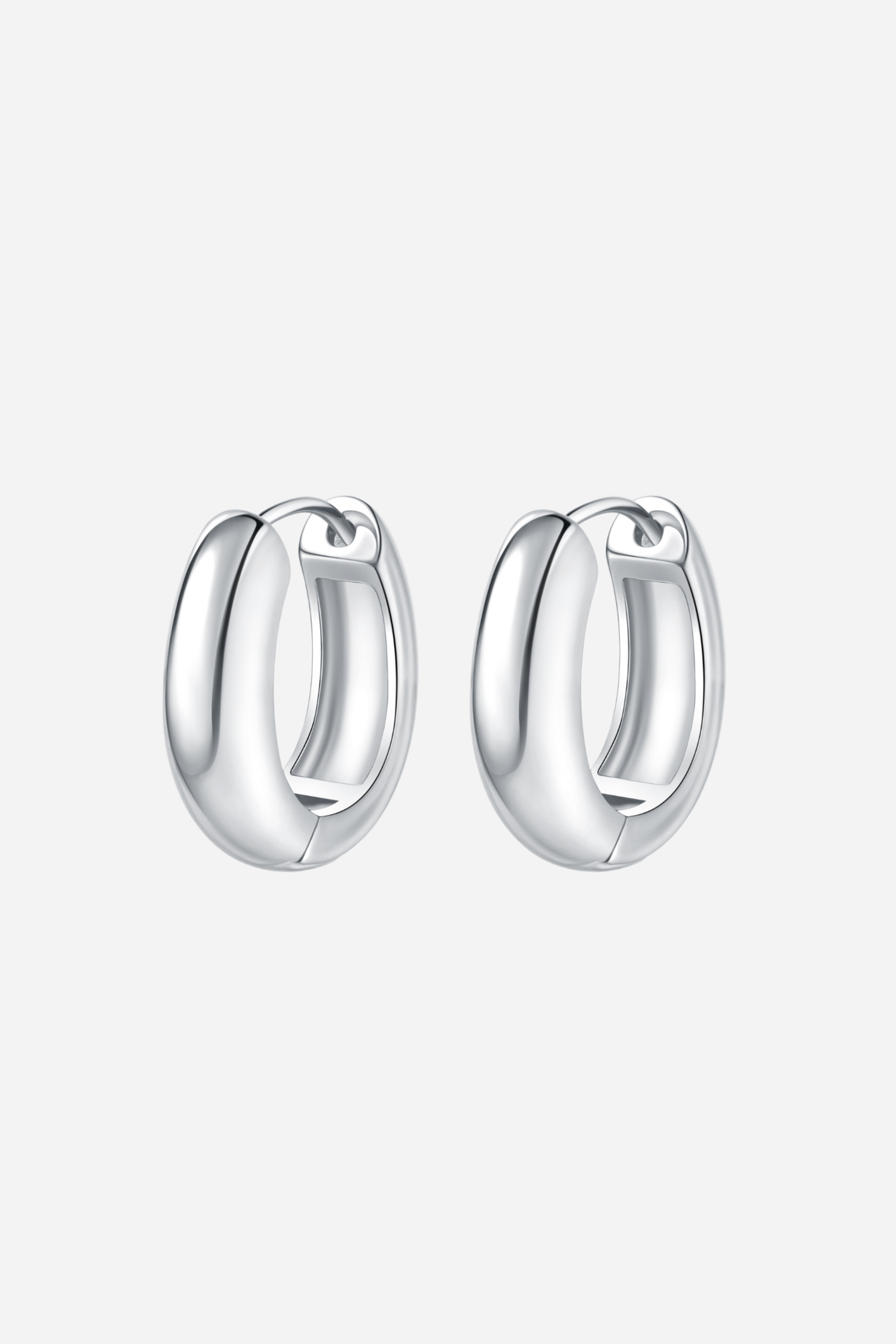 Disse Nine hoops har en oval form med en tykkere profil og en sikker lukkemekanisme, der holder øreringene sikkert på plads. Den polerede overflade fremhæves af en indgraveret detalje på siden.