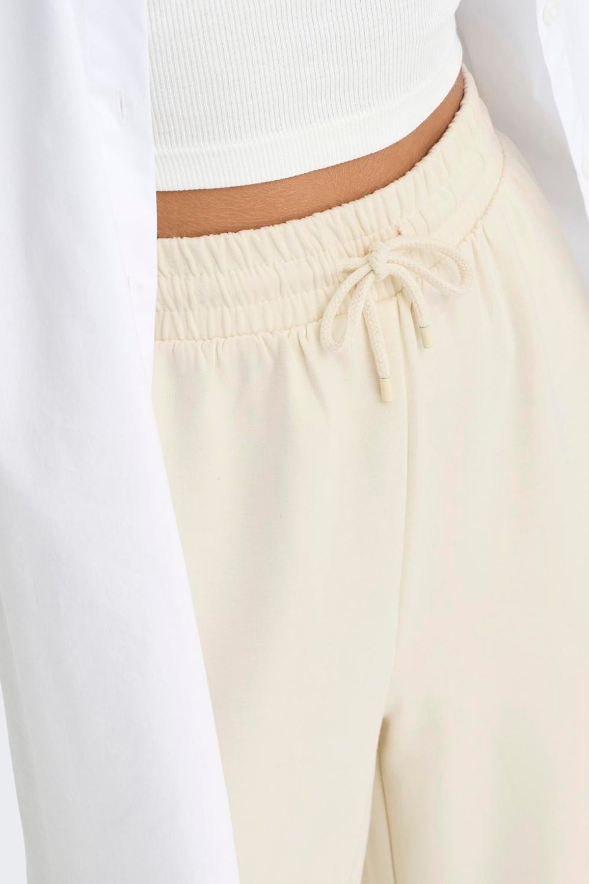 Disse brede bukser i en blød blanding af genanvendt polyester, viscose og polyester er perfekte til både hverdag og festlige lejligheder. Den elastiske linning med snøre sikrer en behagelig og justerbar pasform, mens den udvidede benform giver et moderne og afslappet look. Farven Birch i en lys grå nuance gør dem nemme at kombinere med både en simpel top eller en mere pyntet bluse.