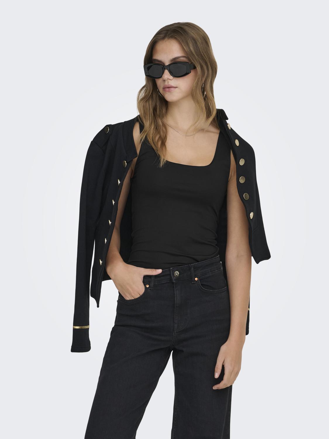 Denne Only-top giver dig mulighed for at skifte mellem dyb rund og høj hals. Den tætsiddende pasform og de brede stropper sikrer god støtte gennem dagen, hvad enten du skal på café eller handle.