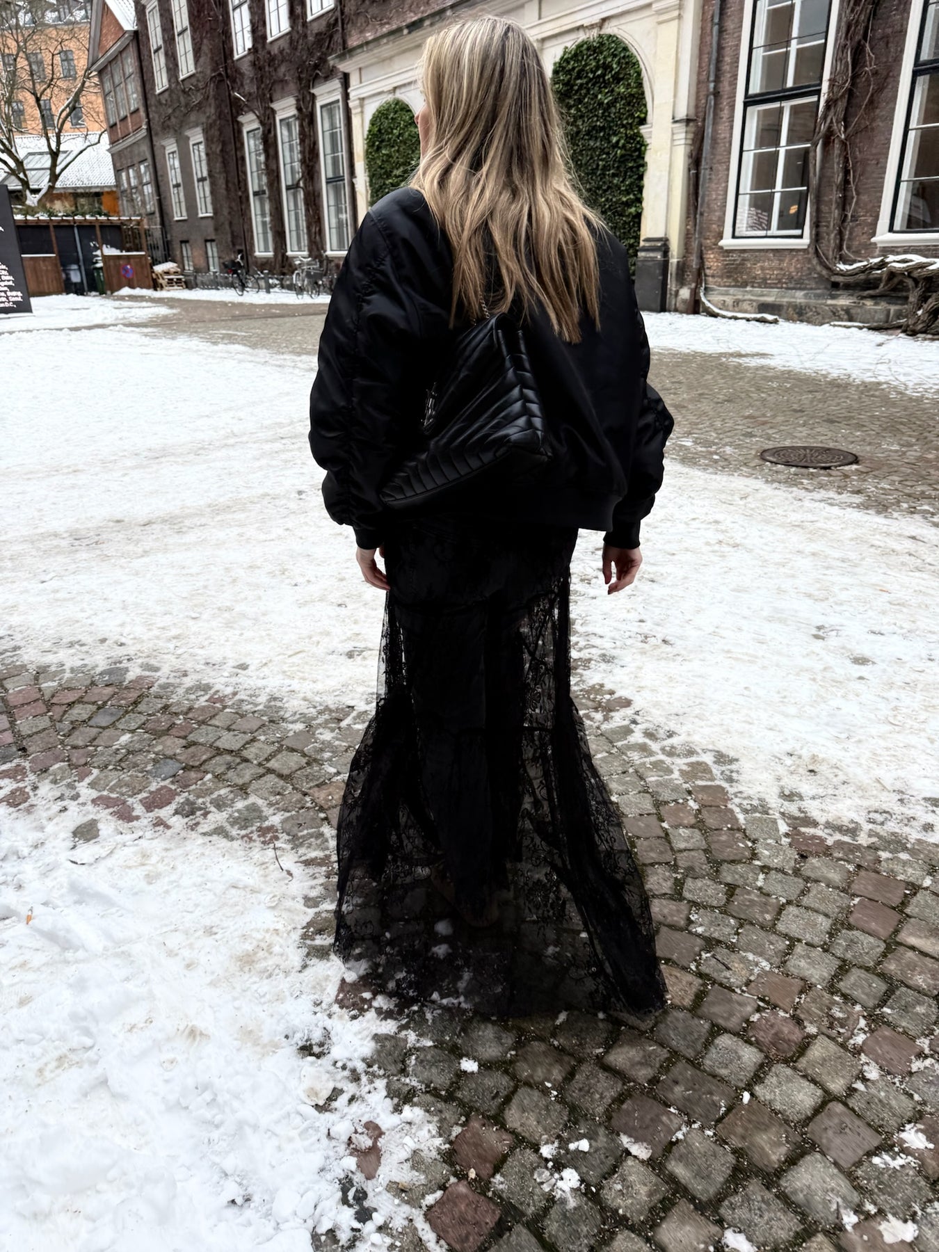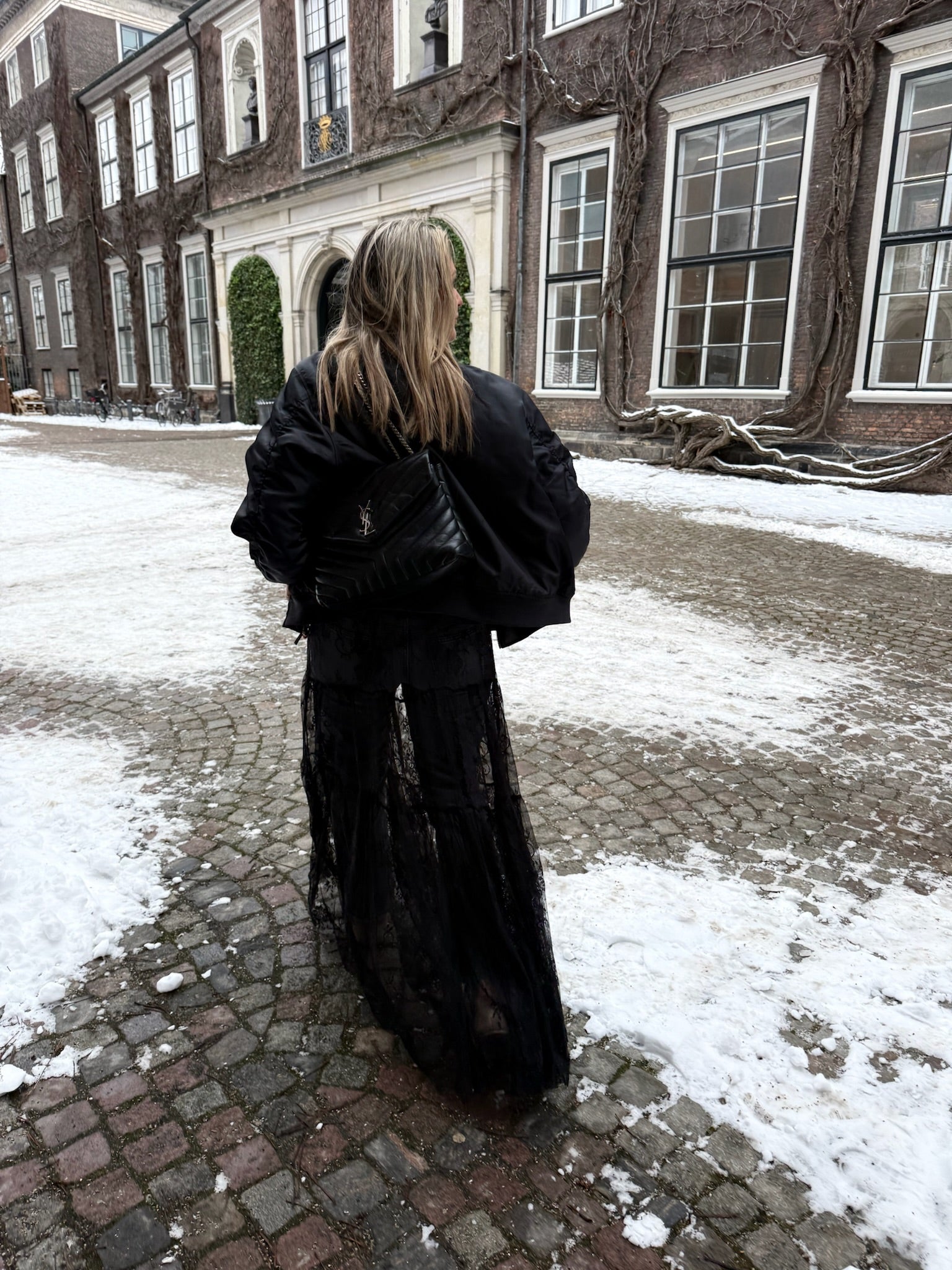 Denne sorte blondenederdel fra Sassy Copenhagen er et stilfuldt valg for den modebevidste kvinde. Den lange nederdel har et sofistikeret look med sit lagdelte design, der kombinerer gennemsigtig blonde med et uigennemsigtigt underlag. Nederdelen er designet til at give dit outfit et cool og elegant præg, perfekt til både hverdag og særlige lejligheder. Med sin unikke stil tilføjer denne nederdel øjeblikkeligt et touch af femininitet til enhver garderobe.