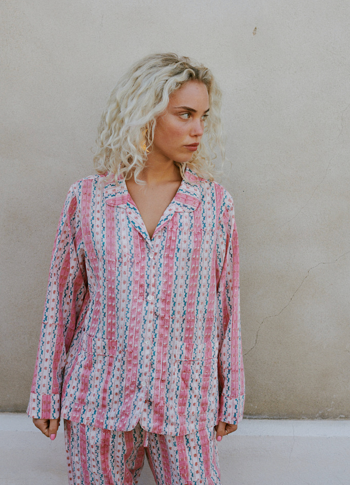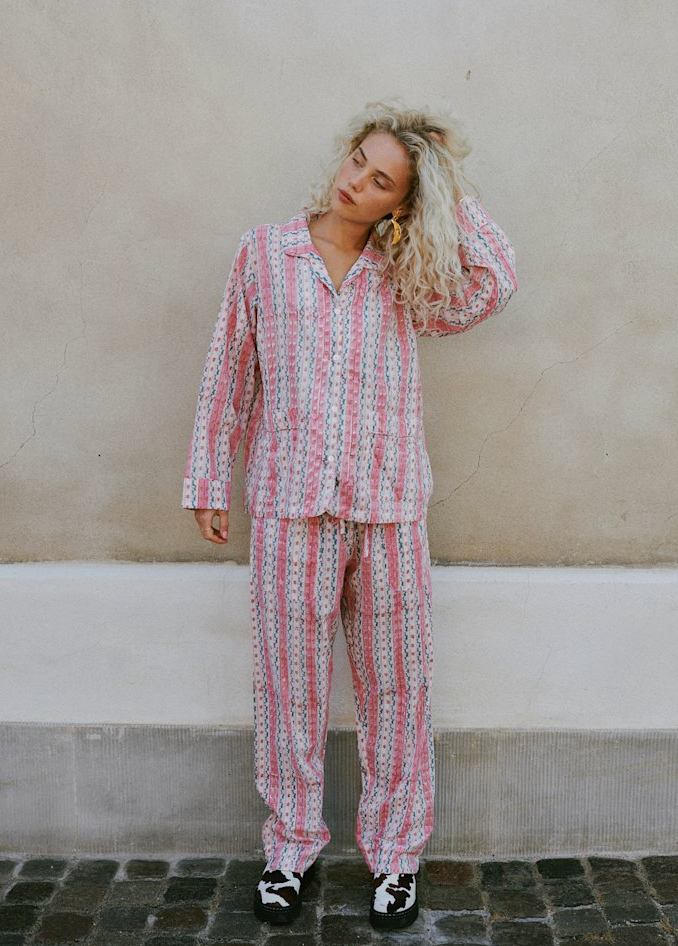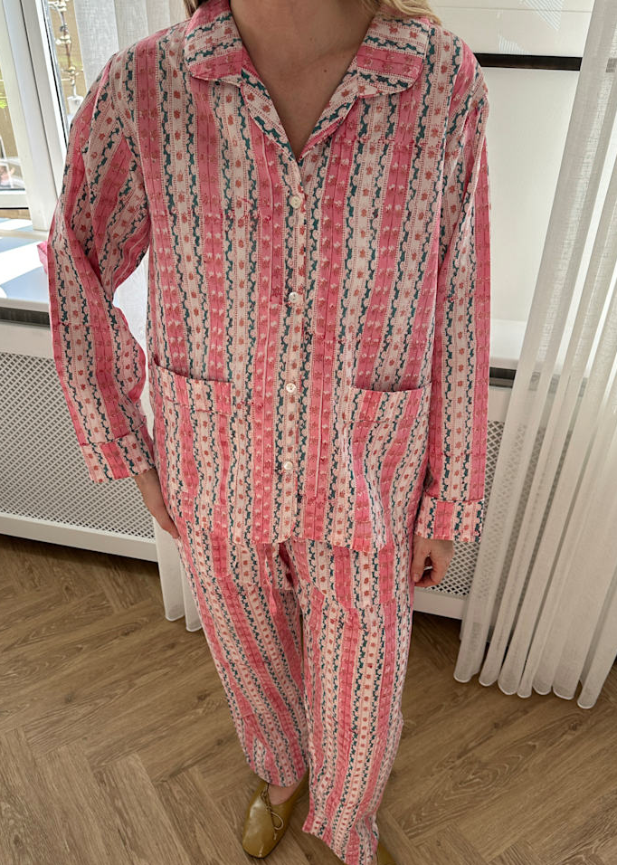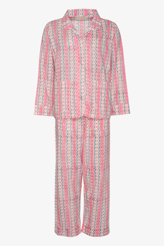 Dette nattøjssæt fra Sissel Edelbo er skabt til afslapning derhjemme. Det bløde, åndbare stof sikrer komfort og reducerer hudirritation. Sættet har praktiske lommer til småting som telefon eller briller.