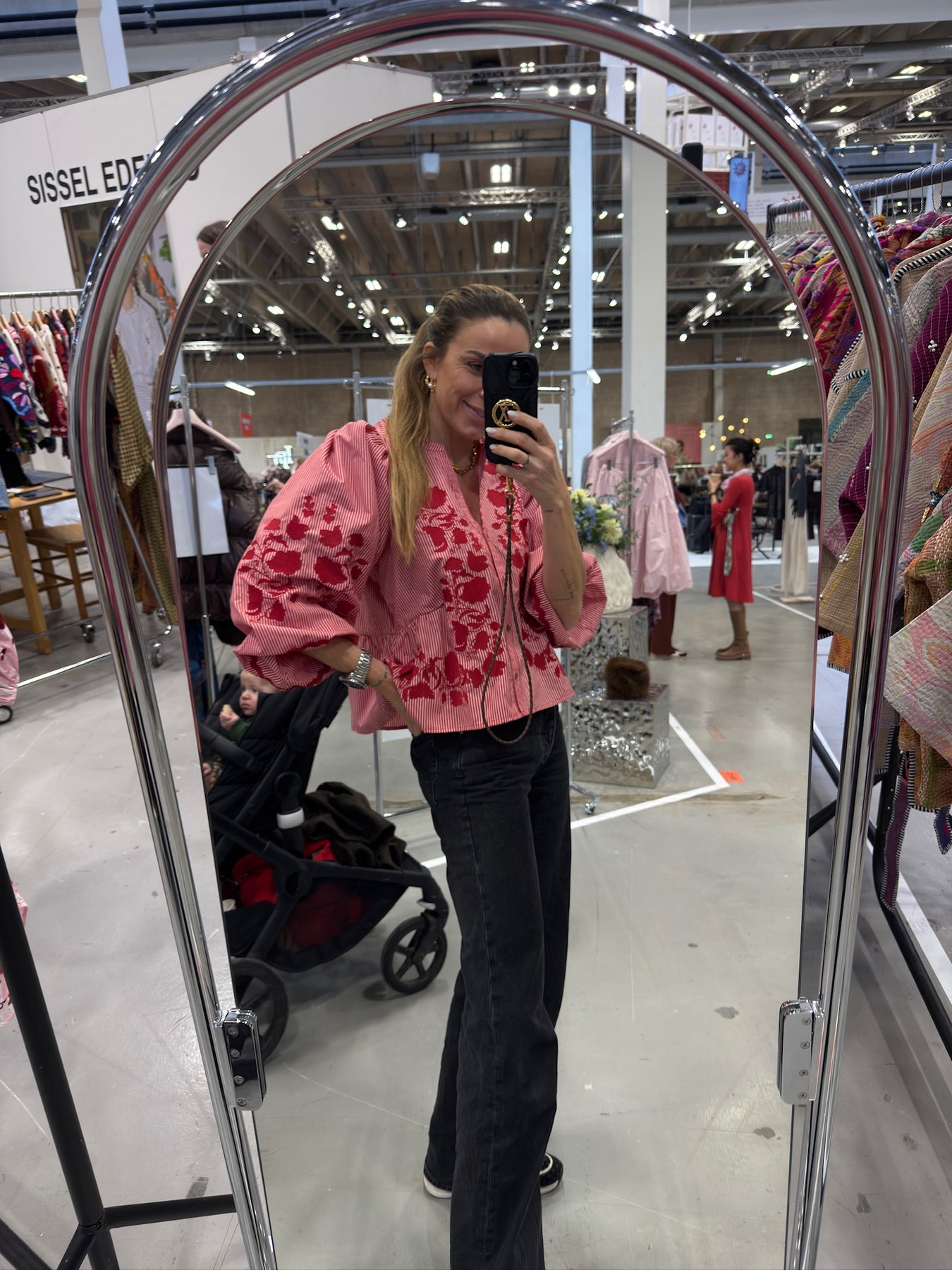 Som en del af SISSEL EDELBOs værdier er Juliane Top lavet af restmaterialer (deadstock fabrics) – overskydende metervarer fundet på markeder og hos leverandører. Derfor produceres den i limited edition, og fordi stoffet er restmateriale, kan der forekomme små variationer i farve, striber og/eller broderiplacering fra blusen på billedet.