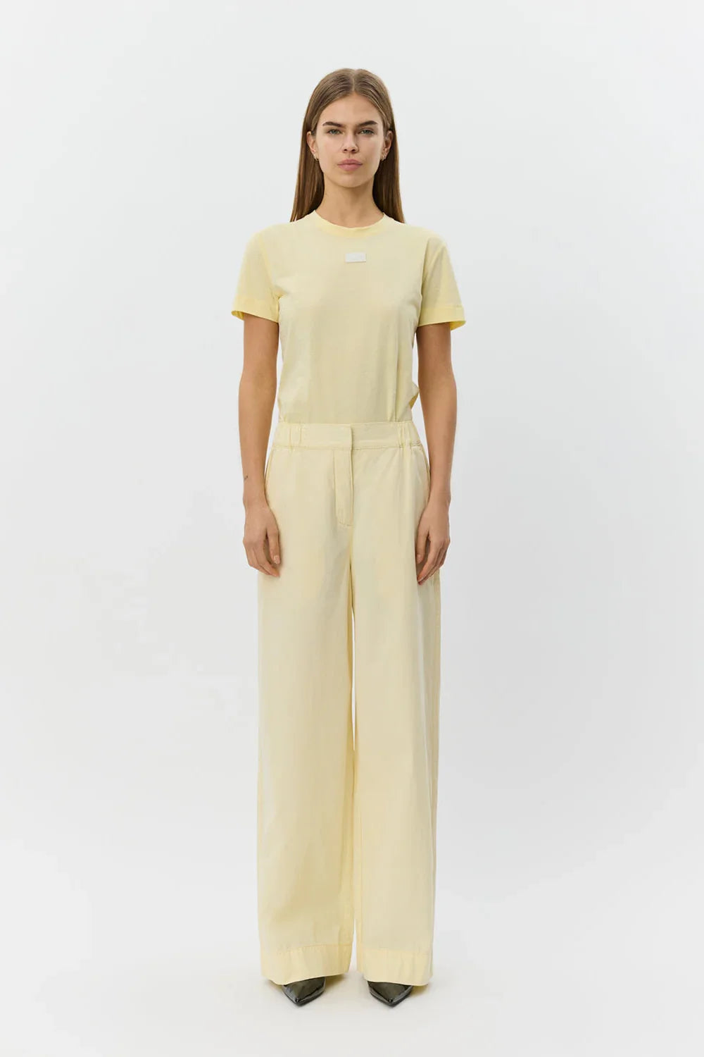Reine bukserne har et moderne wide leg-snit med mid-waist pasform, der giver et afslappet og elegant udtryk. Modellen er regular fit og designet med skjult lukning samt bæltestropper, så de nemt kan styles både casual og mere klassisk. Sofie Schnoor Bukserne har elastik i livet bagpå for ekstra komfort samt praktiske sidelommer og baglommer, hvor den ene er pyntet med en diskret logodetalje.