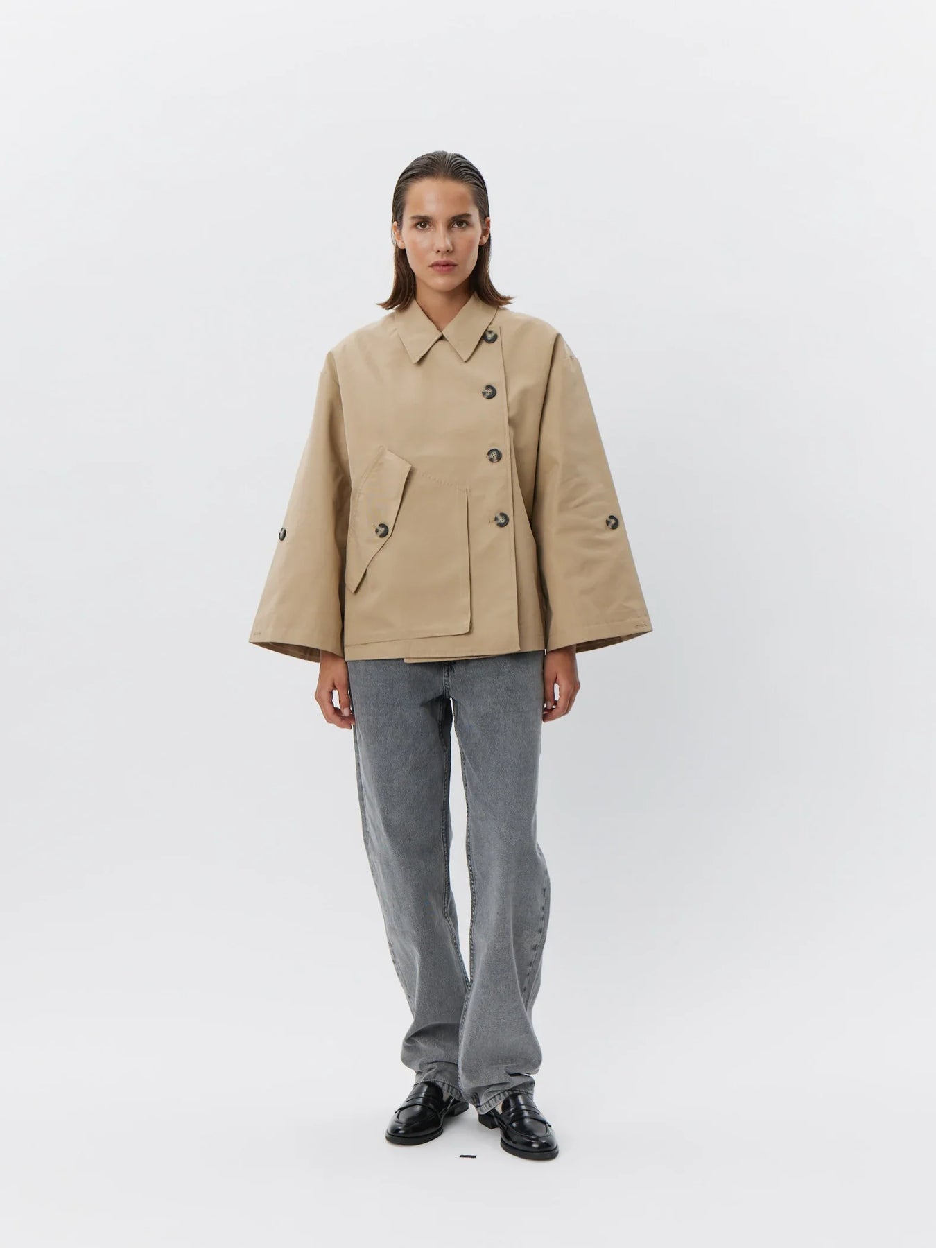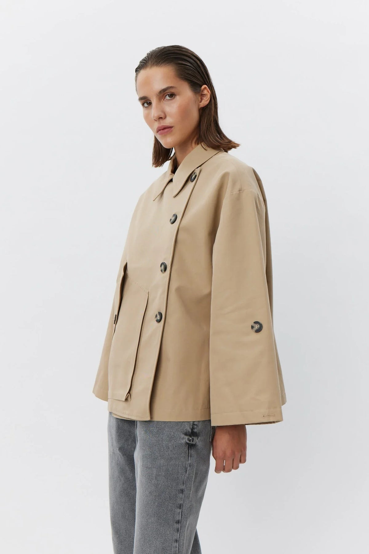Agatha Jakke fra Sofie Schnoor er en stilren, kort jakke i en klassisk camel farve. Jakken er designet med knaplukning, en elegant krave og en stor lomme på fronten, som giver et moderne og funktionelt udtryk. Den har et regular fit, der gør den nem at style til både hverdag og mere polerede looks.