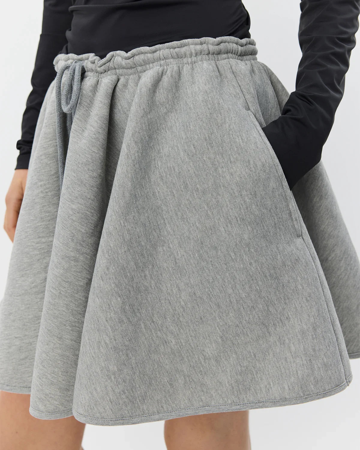 Jessica nederdelen fra Sofie Schnoor er en cool og komfortabel mininederdel i en blød grå melange kvalitet. Den har en A-formet silhuet, som falder flot og giver et feminint udtryk med masser af bevægelse.