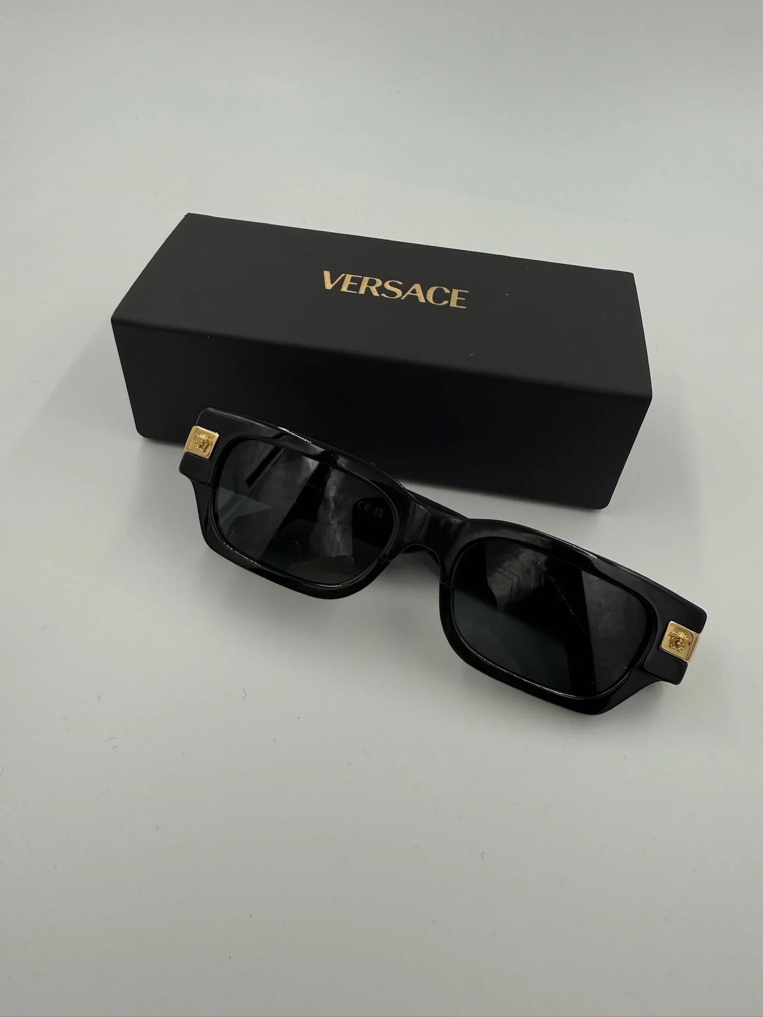 De ikoniske gyldne Medusa-detaljer ved hængslerne tilfører et luksuriøst Versace-touch. Brillerne kombinerer tidløs stil med høj kvalitet og er perfekte til dig, der ønsker et selvsikkert og stilfuldt accessory.