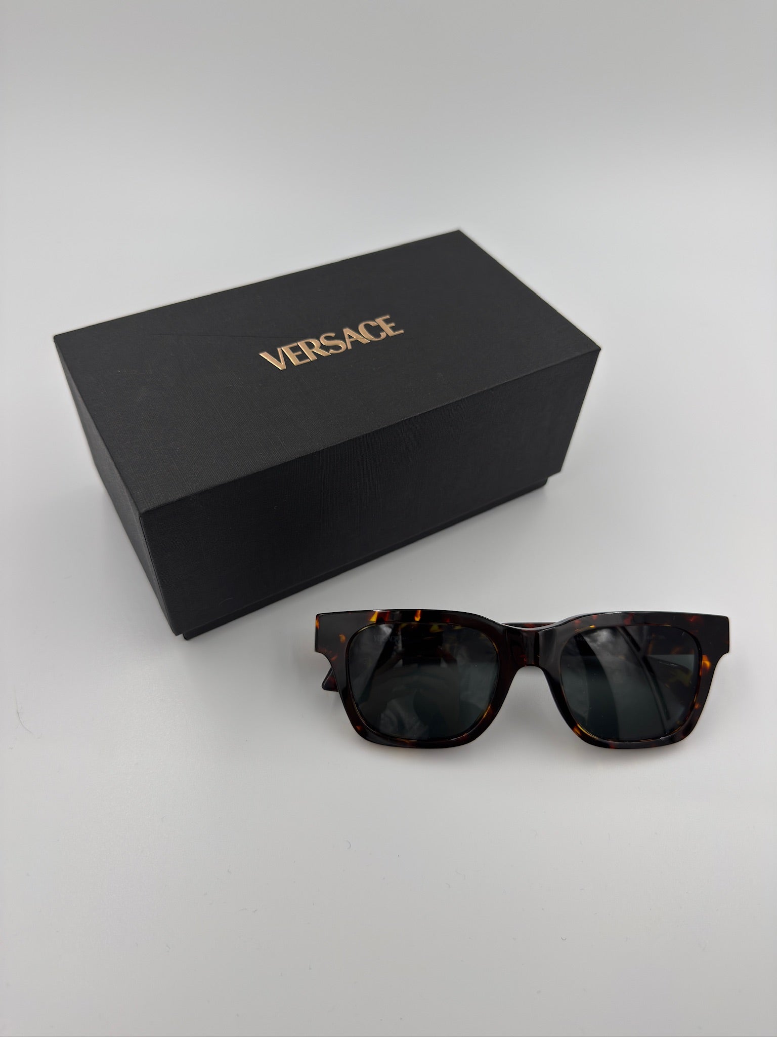 Disse solbriller fra Versace er elegante solbriller med et markant firkantet design, der kombinerer klassisk stil med et moderne udtryk. Den tidløse tortoise-ramme sammen med de mørke linser giver et sofistikeret look, mens det ikoniske Versace-logo på stængerne tilfører et eksklusivt touch. Solbrillerne yder effektiv UV-beskyttelse og er et stilfuldt valg til både hverdag og særlige anledninger.