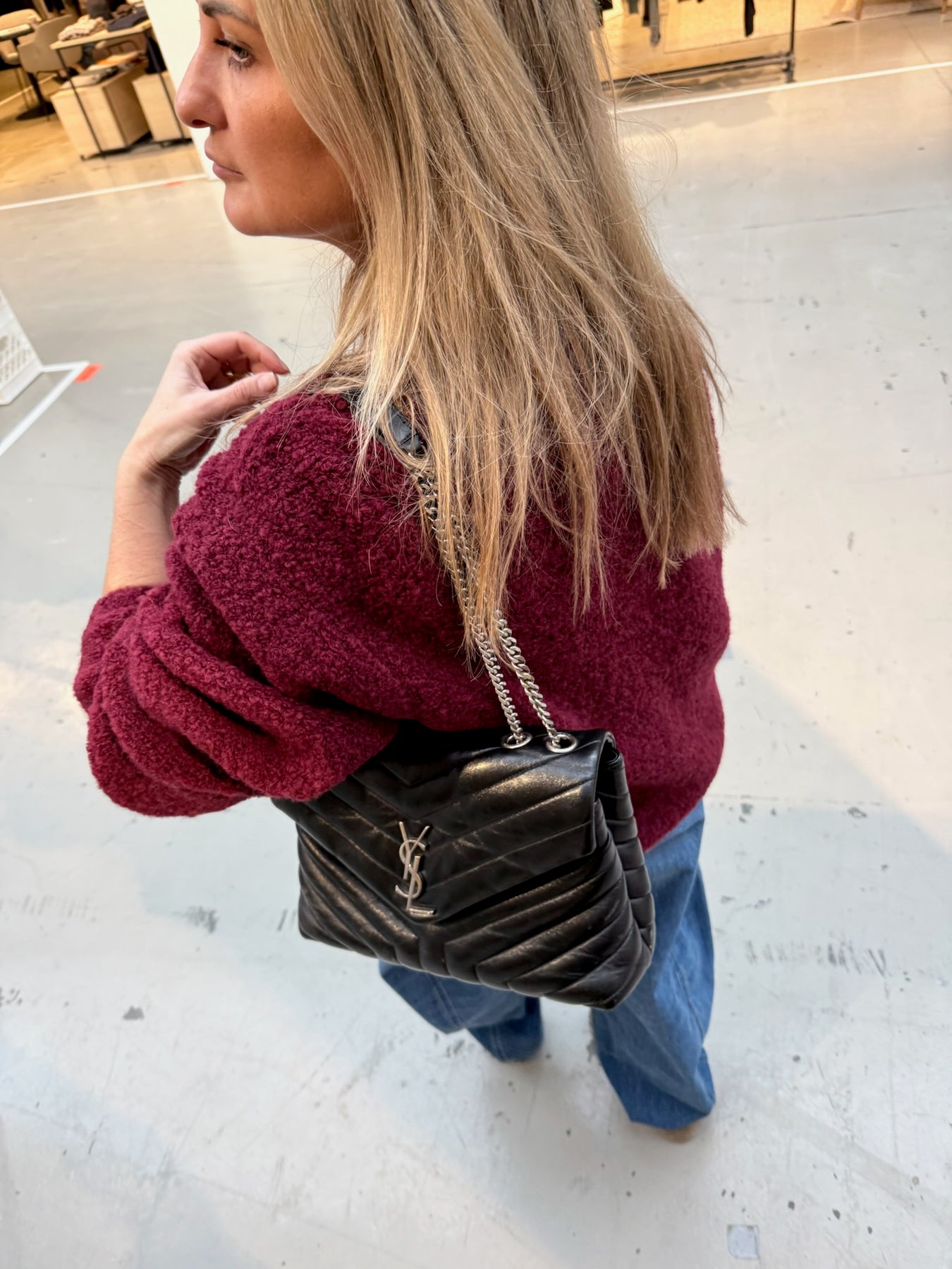 The Zolly cardigan from American Vintage is a soft, cozy and slightly oversized knit that combines comfort with a relaxed, stylish look. The distinctive melange berry-red color “Grenade Chine” gives a warm and refined look, perfect for both everyday wear and layering in the cooler months.