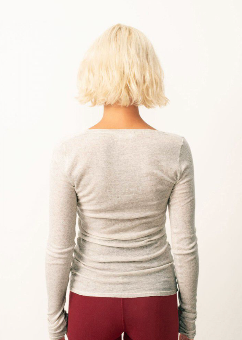 Blusen har en rund halsudskæring og lange ærmer, hvilket gør den ideel som et alsidigt hverdagsitem – perfekt alene eller som basis under en strik eller sweatshirt i de køligere måneder. Den lette stretch sikrer, at pasformen føles behagelig og følger kroppens bevægelser.