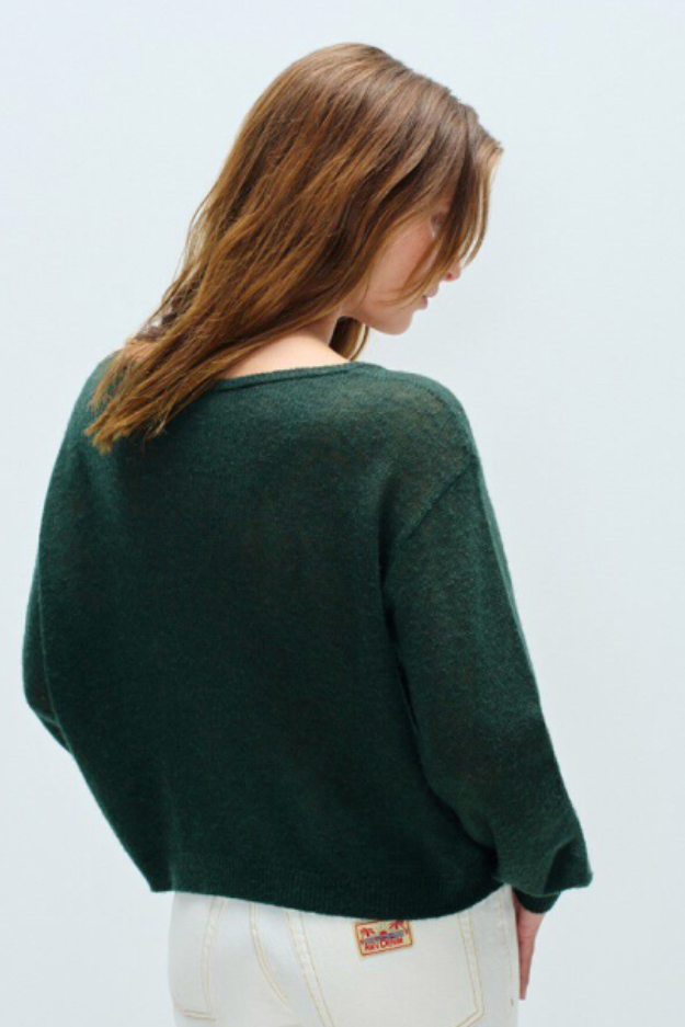 American Vintage Uldstrik – Kort Mørkegrøn Strik med V-udskæring