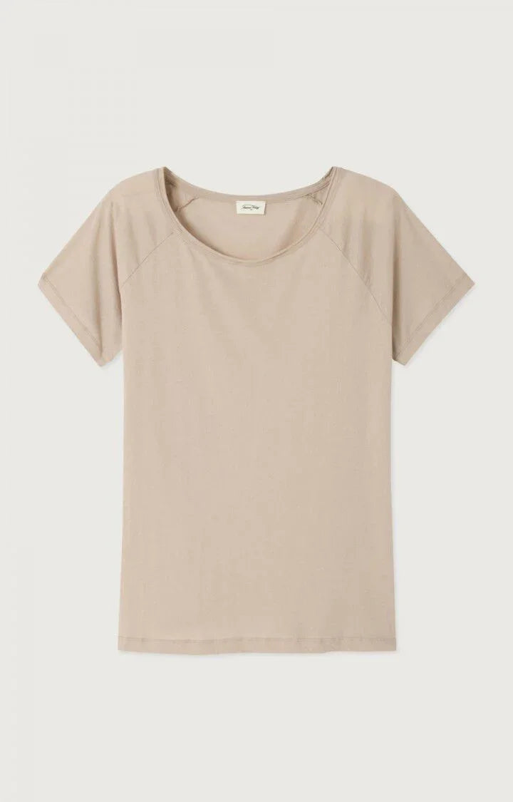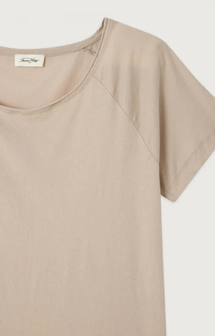Laloom t-shirten fra American Vintage er en enkel og tidløs basisstyle med et afslappet udtryk. Den er designet med en rund halsudskæring, korte ærmer og fine raglan-sømme, som giver et blødt og casual look. Pasformen er let løs og behagelig, perfekt til både hverdag og lag-på-lag styling.