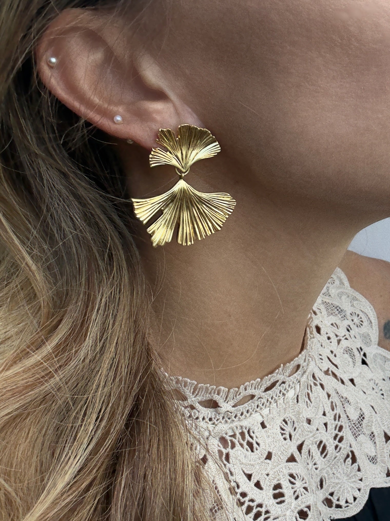 Small pearl earrings with gold finish