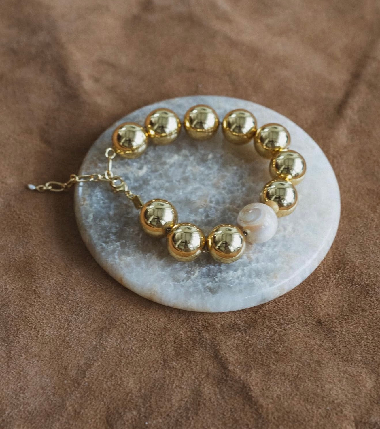 Made of brass with flash gold plating and e-coating The bracelet adjusts from 18 - 21 cm Finished with a lobster clasp