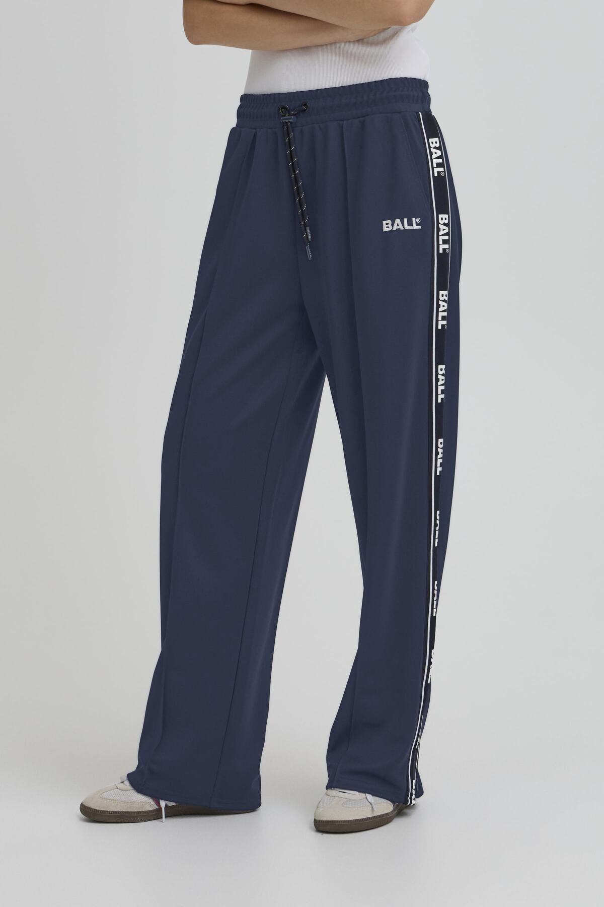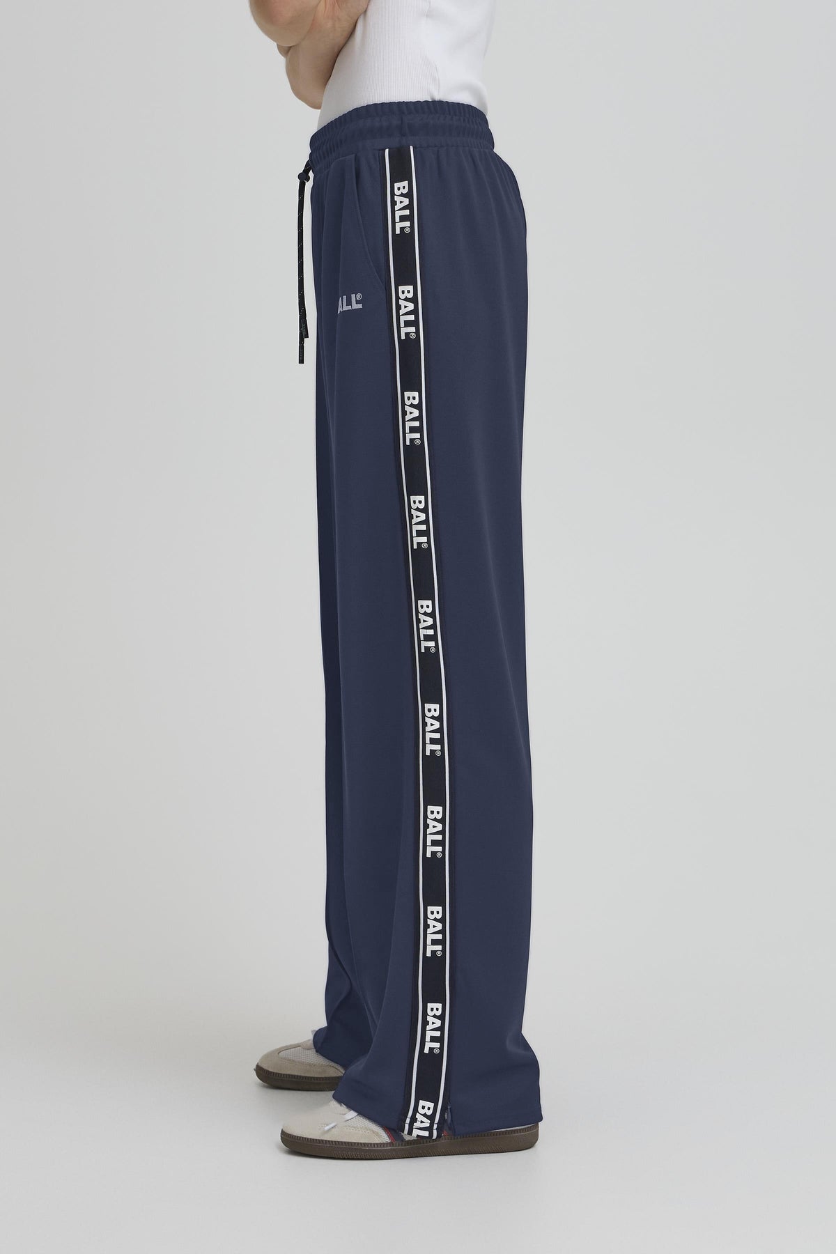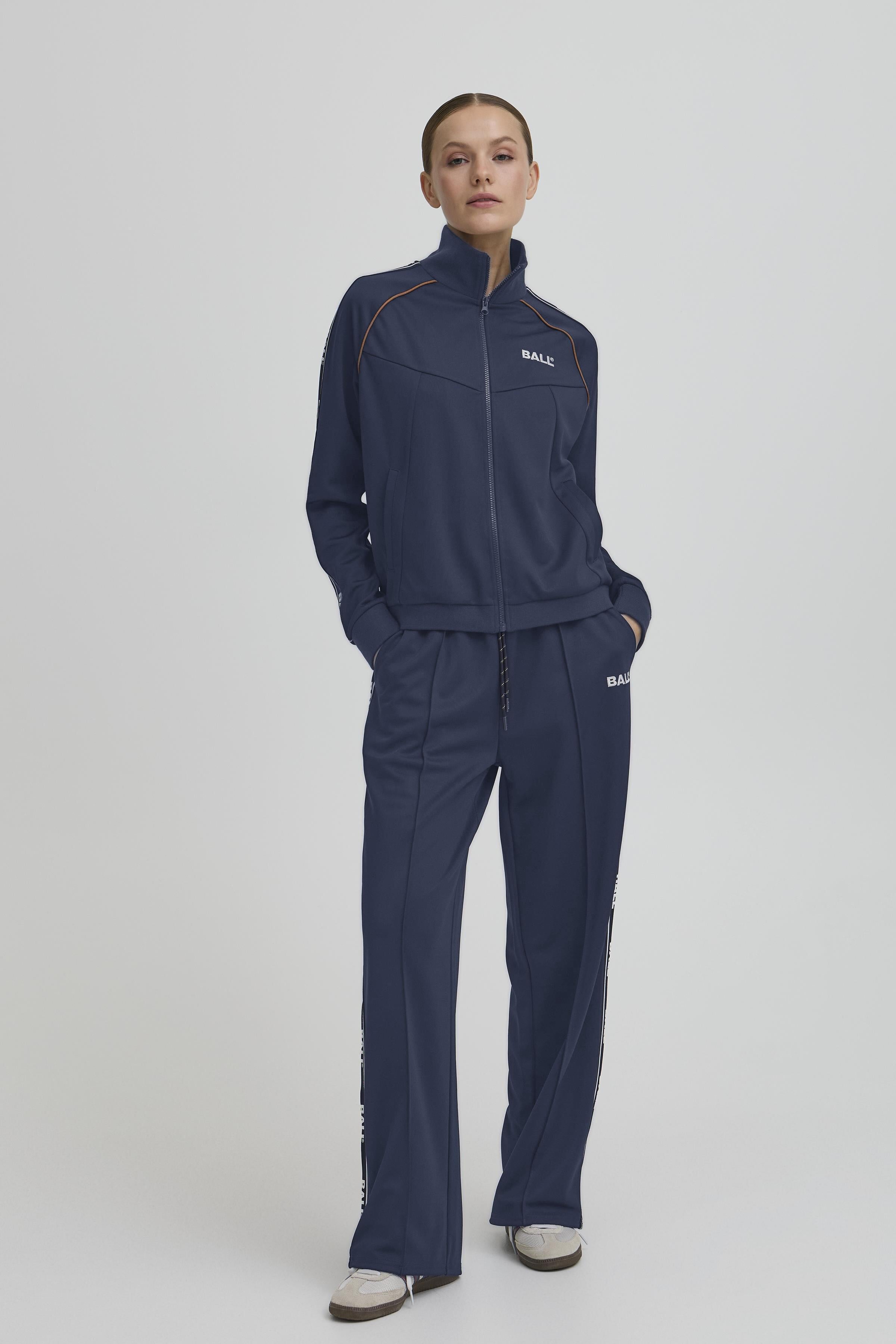Ball Nicolina Track Pants i blå er sporty og moderne trackbukser med et afslappet, løst snit og klassiske atletiske detaljer. Bukserne er lavet i 100% polyester, har elastik i taljen med bindesnører for en justerbar og komfortabel pasform, sidelommer samt en lynlåslukket baglomme, og de løse ben afsluttes med logo og hvide striber ned langs siderne, der giver et cool, retro‑inspireret look.