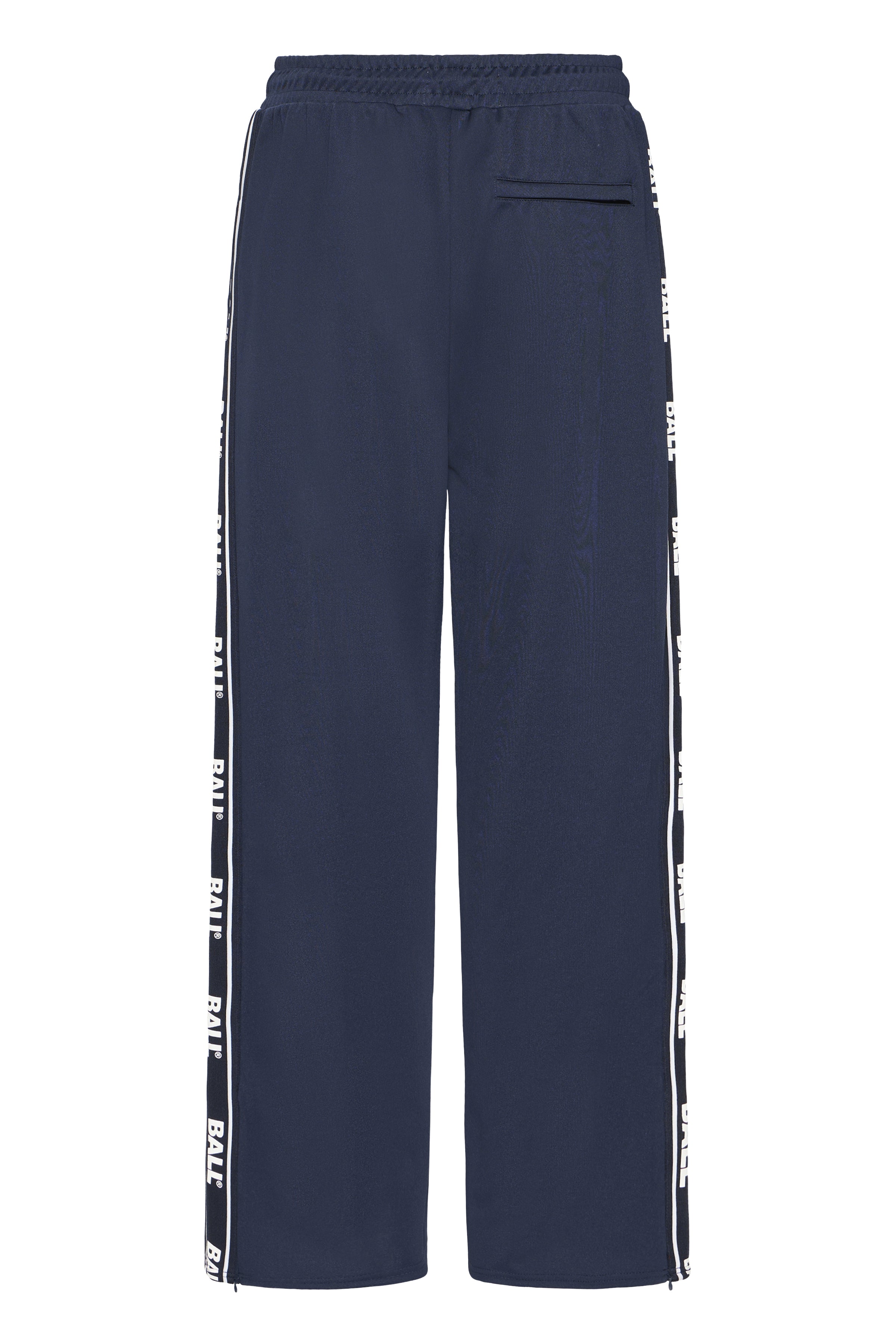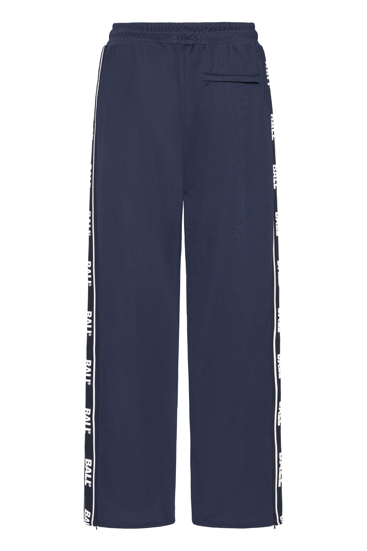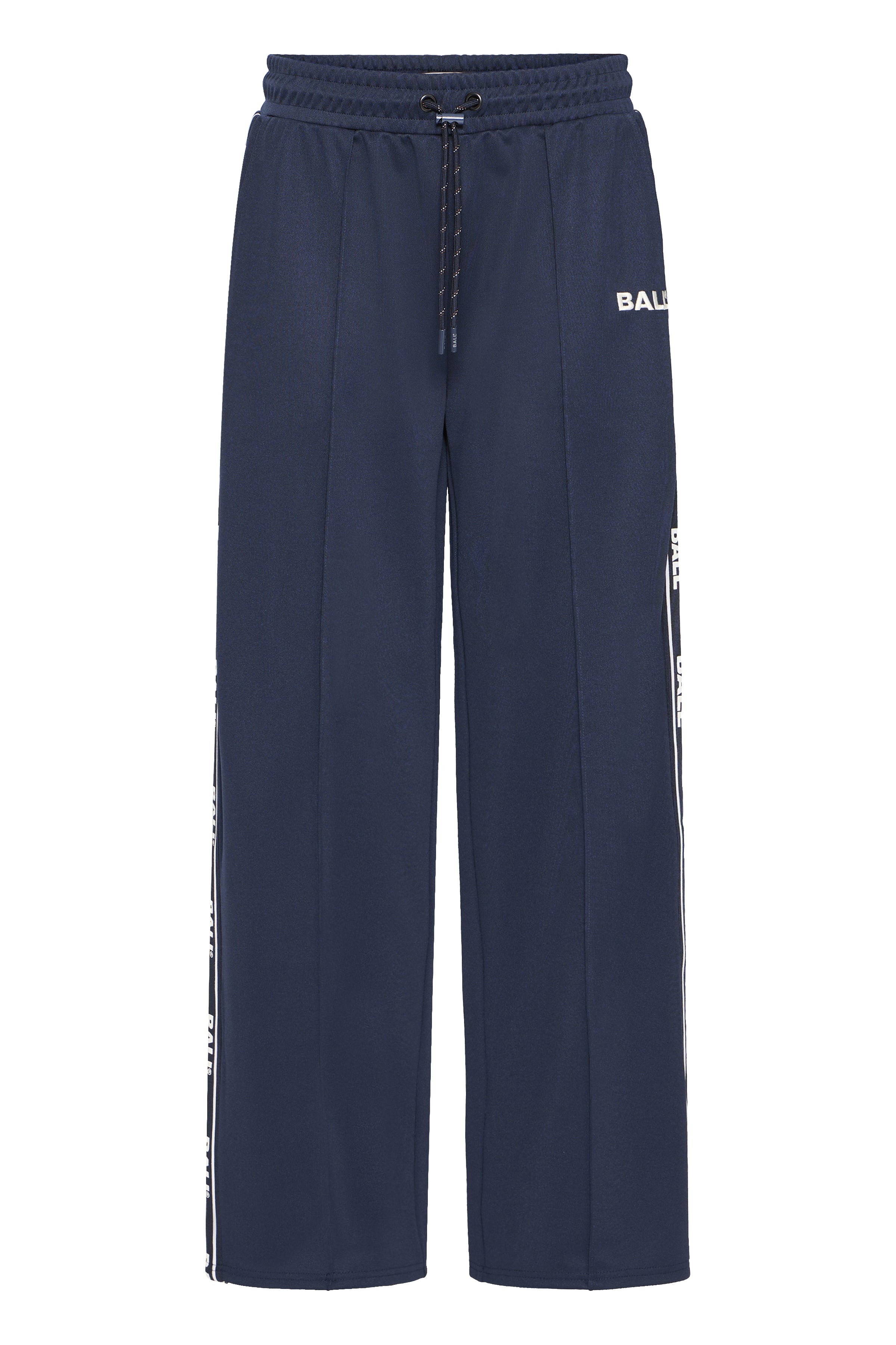 Ball Nicolina Track Pants i blå er sporty og moderne trackbukser med et afslappet, løst snit og klassiske atletiske detaljer. Bukserne er lavet i 100% polyester, har elastik i taljen med bindesnører for en justerbar og komfortabel pasform, sidelommer samt en lynlåslukket baglomme, og de løse ben afsluttes med logo og hvide striber ned langs siderne, der giver et cool, retro‑inspireret look.