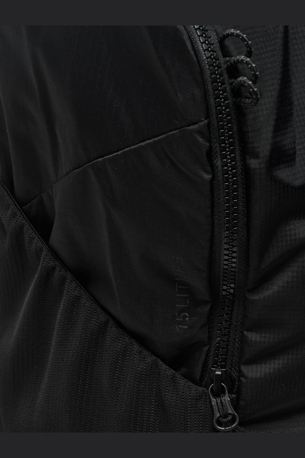 The backpack has a capacity of 15 liters and comes with a spacious main compartment with a zipper closure, where there is room for everything from work equipment to workout clothes. Inside you will find an extra pocket for better organization, while the two mesh side pockets make it easy to store a water bottle, gloves or small essentials. The front buckle is adjustable, so you can easily adapt the volume to the contents.