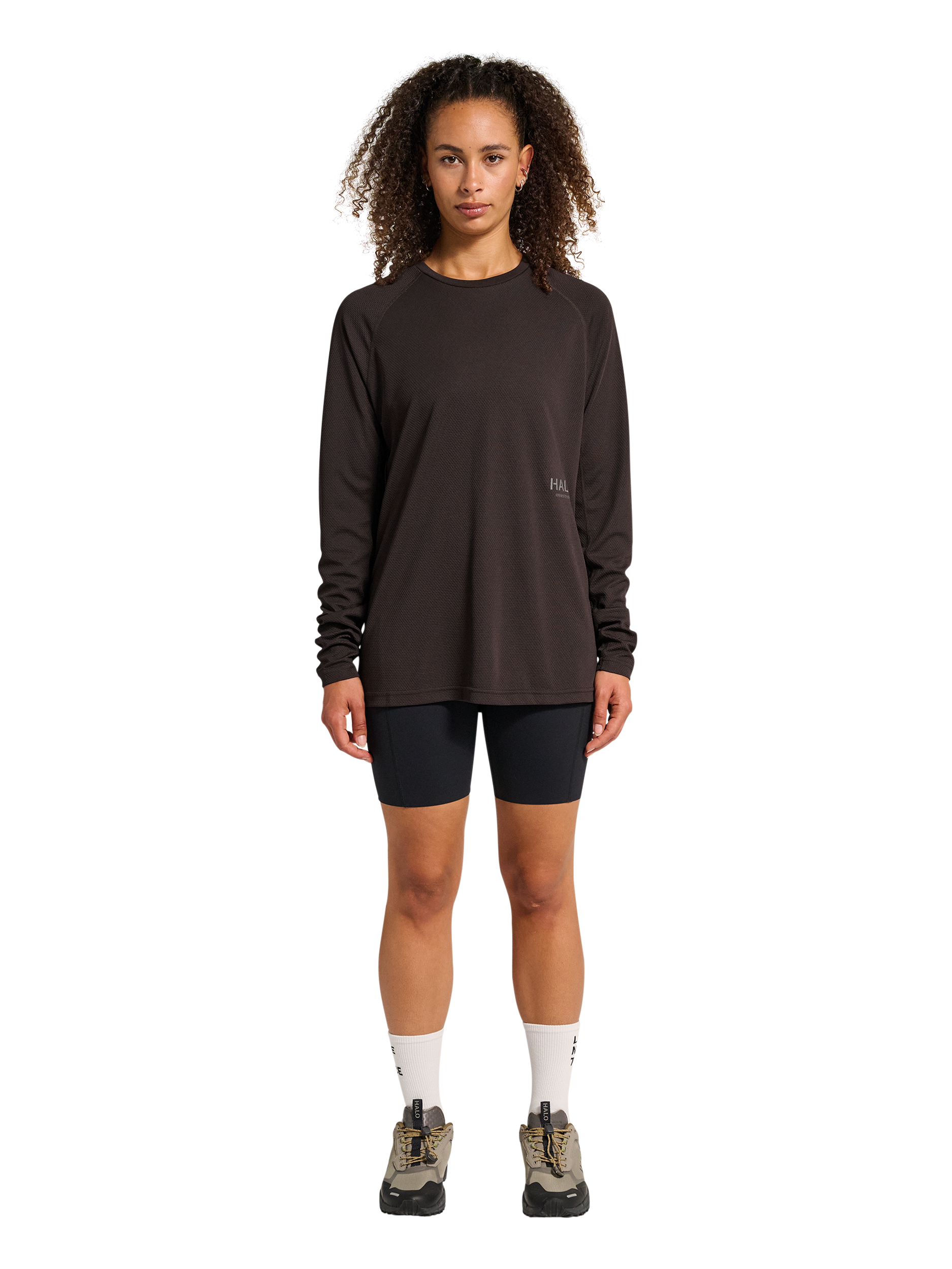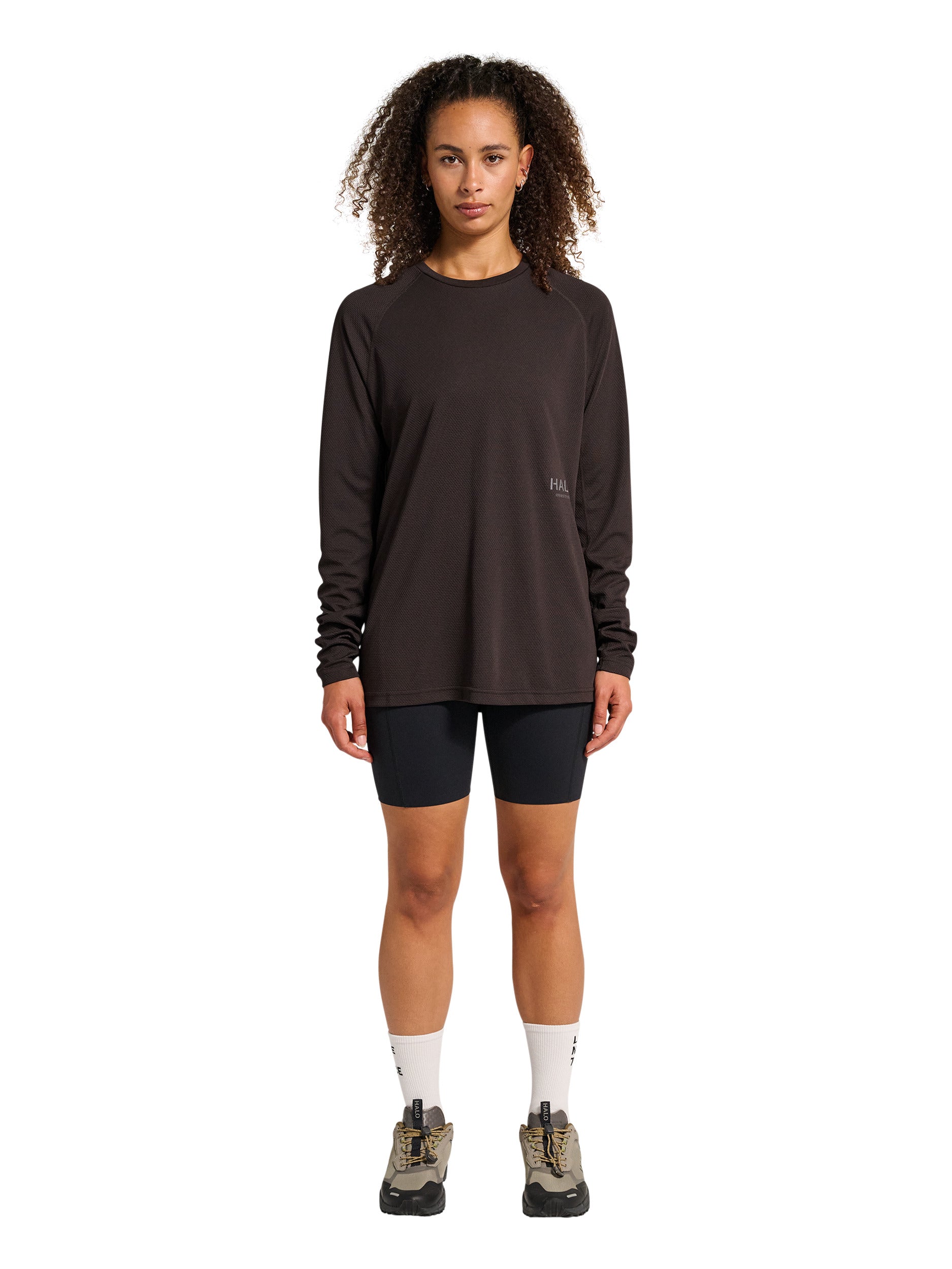HALO SORONA LS er fremstillet i Sorona®-jersey, et teknisk materiale med høj elasticitet, der holder formen og modstår krøl. Designet har et reflekterende HALO logo-print og 2-vejs stræk for optimal bevægelighed.