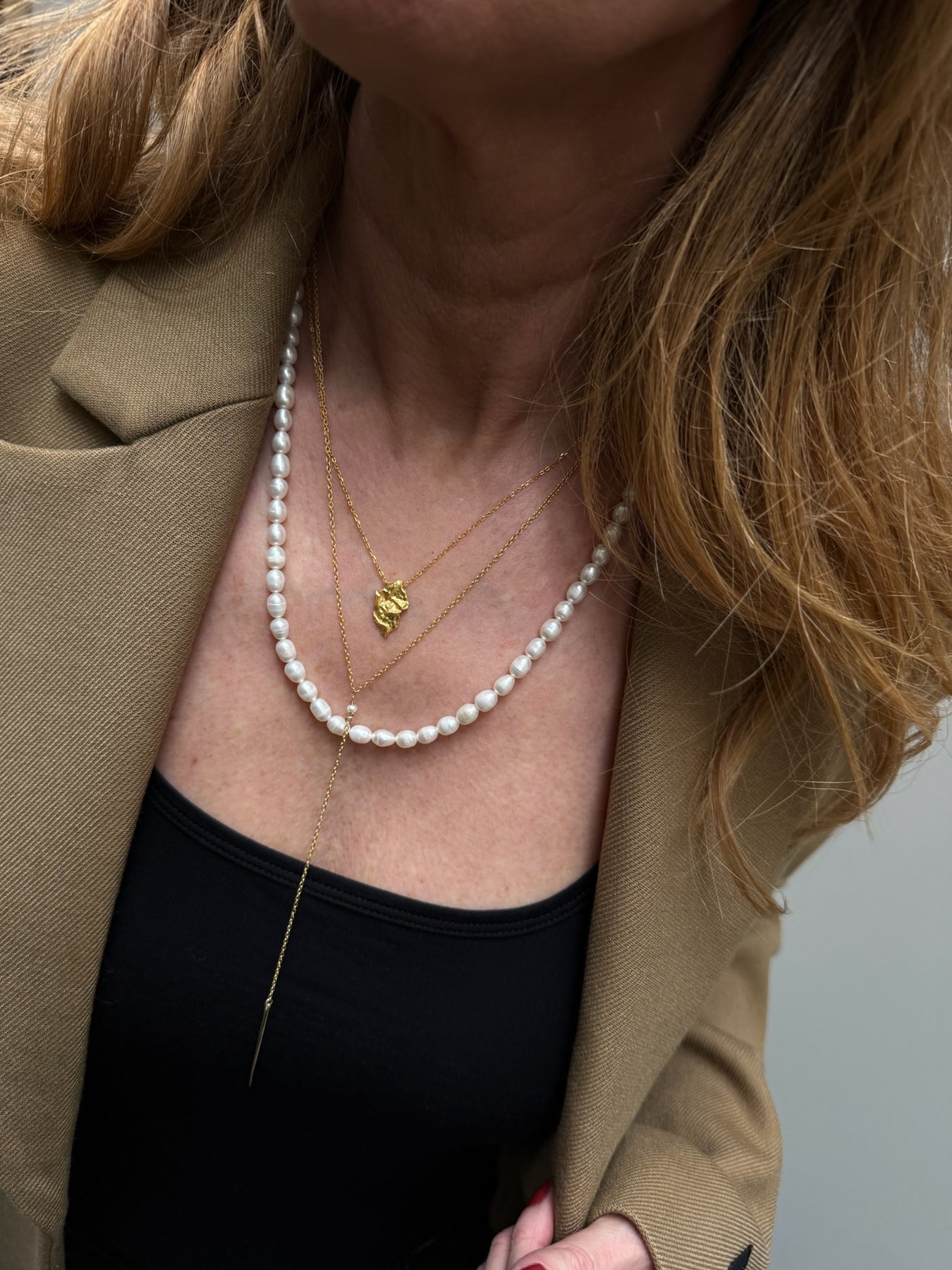 Andcopenhagen Eleonora necklace with adjustable length gives you the freedom to style it however you want. The fine chain is adorned with a pearl and spear detail that adds a special touch.