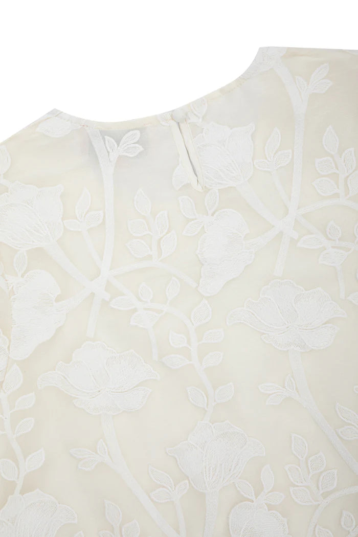 Aiko Top i cream fra Hunkøn er en elegant og feminin top med et subtilt kunstnerisk twist. Den ærmeløse top har små runde appliqué-detaljer på fronten, justerbare stropper og en smockdetaljeret ryg, der giver både komfort og et smukt fald. Fremstillet i let polyester, fungerer den perfekt alene på varme dage eller under en blazer, og de fine detaljer giver et karakterfuldt, men subtilt udtryk.