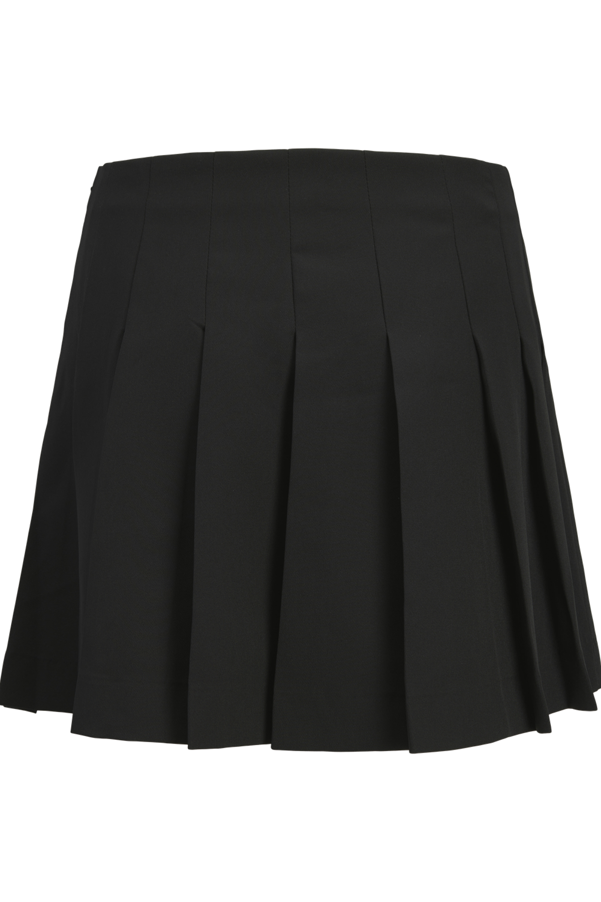 Dette plisserede nederdel i vævet materiale kombinerer holdbarhed og et klassisk udtryk, der passer perfekt til både hverdagsbrug og mere formelle lejligheder. Nederdelen har en elegant plisseret detalje og lukkes med lynlås, hvilket giver et stilfuldt og funktionelt design. Den sorte farve gør den let at kombinere med forskellige toppe og accessories.
