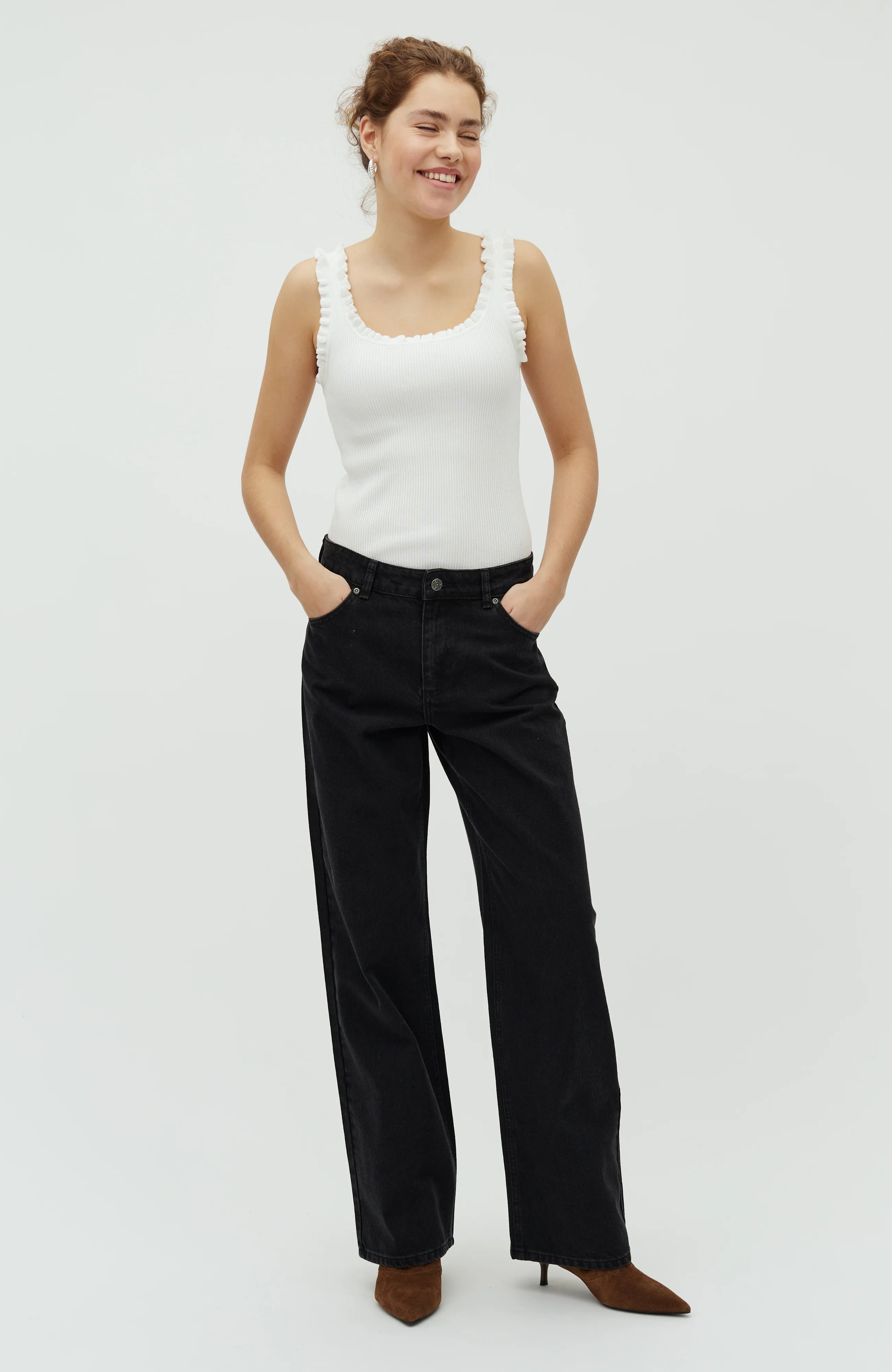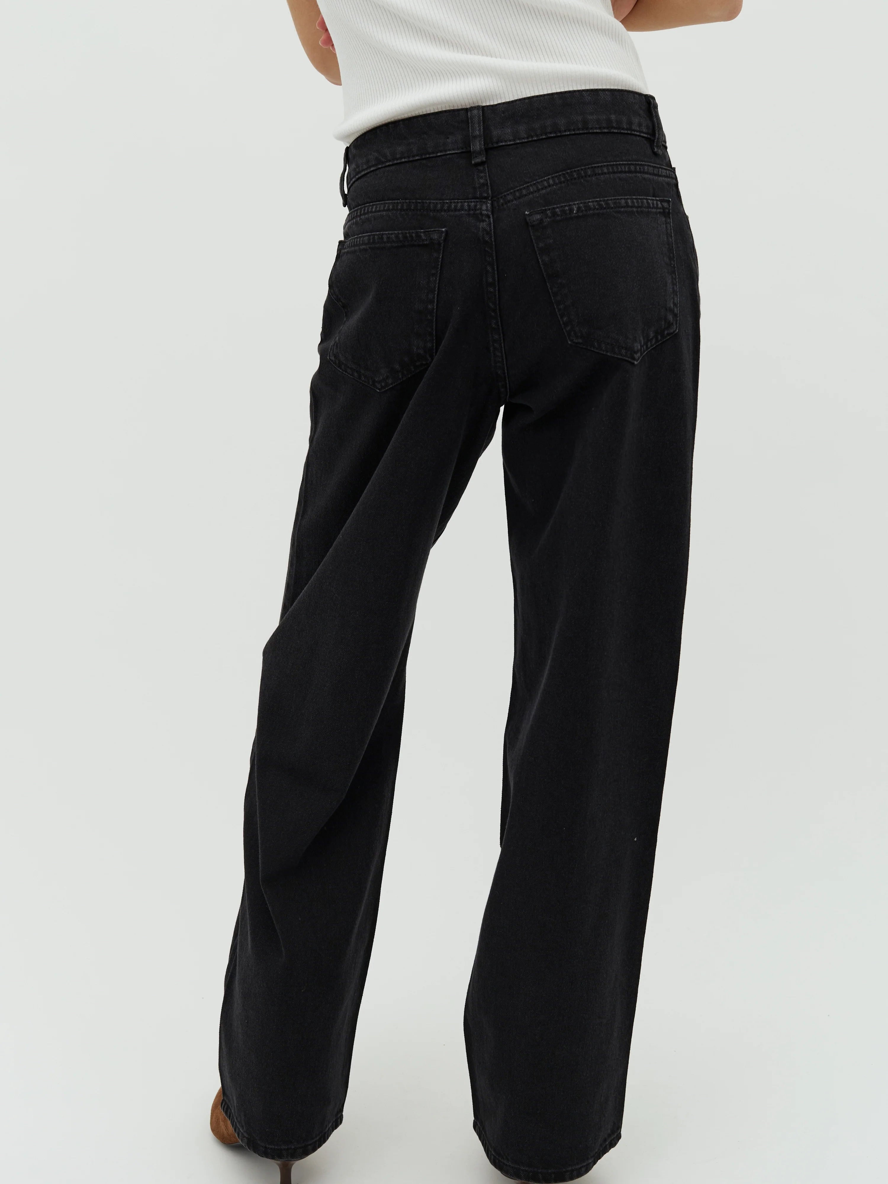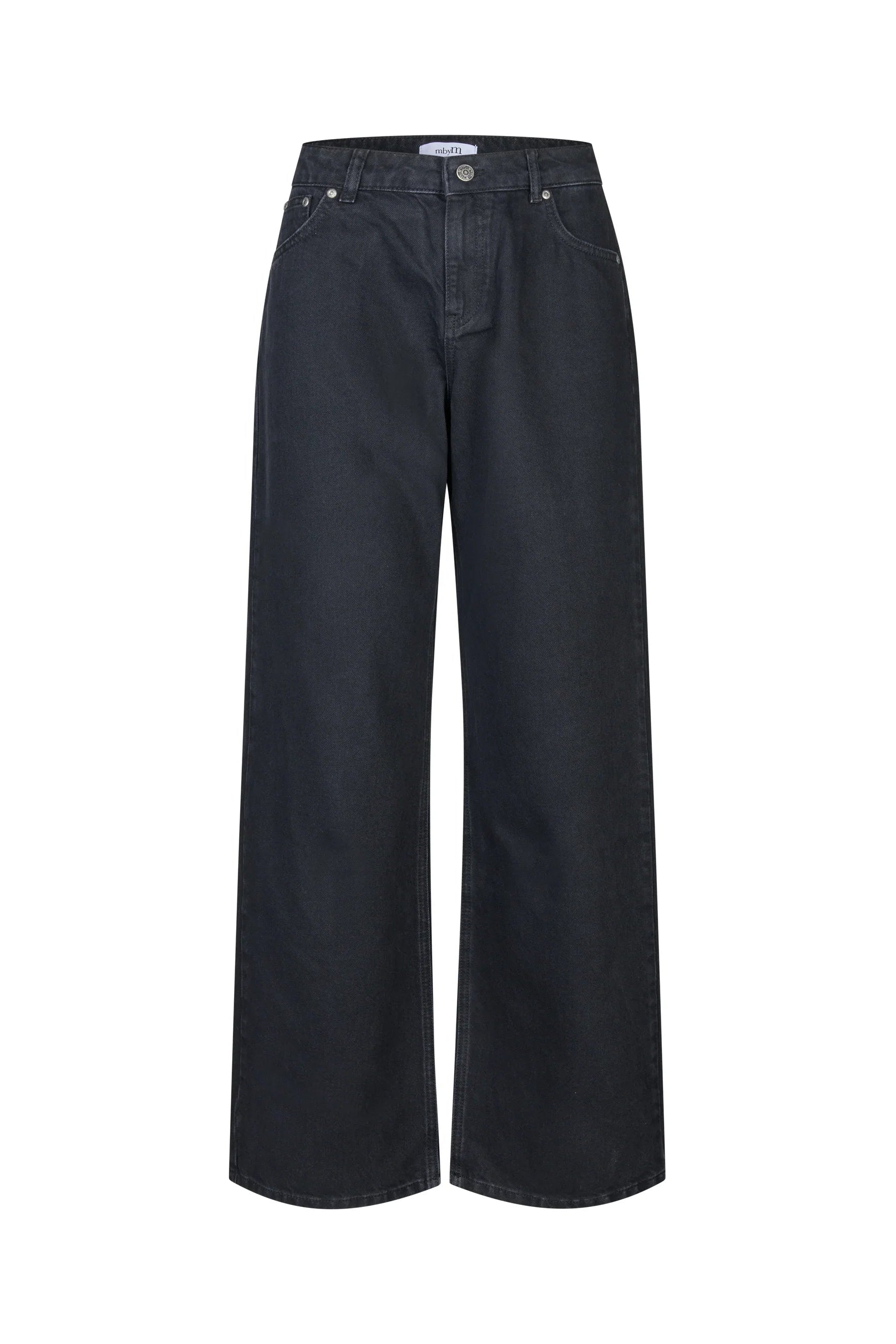 Disse jeans i et klassisk design er lavet af 100% bomuld, hvilket sikrer komfort og holdbarhed. Den mørke farve giver et råt, tidsløst look, der passer perfekt til både hverdag og mere afslappede stunder.