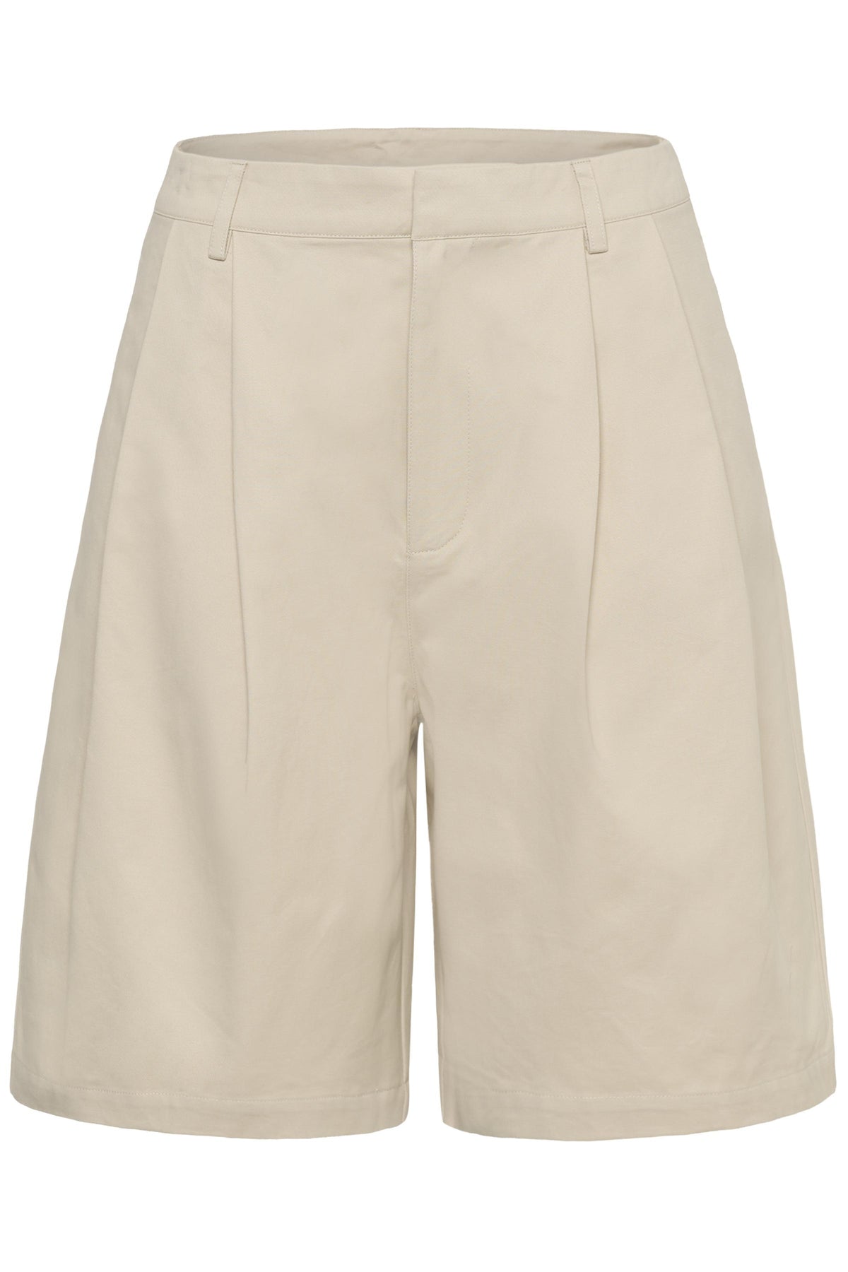 Gisva shorts fra My Essential Wardrobe i farven oatmeal er et stilrent og alsidigt sommeritem. De har en high-waist pasform med løse, lige ben og fine læg foran, som giver et afslappet men elegant look. Den lyse beige nuance gør dem nemme at style, mens bomuldskvaliteten sikrer god komfort på varme dage.