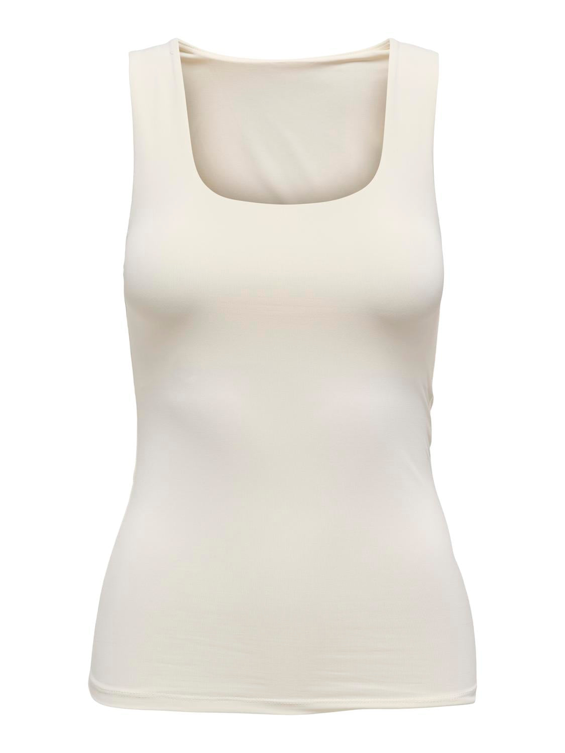 Only's Ea Two Way Strop Top in off-white is a smart solution for your wardrobe. This versatile top allows you to switch between two different styles. You can choose a deep round neckline or turn the top so that the neckline sits high at the neck. This makes it perfect for different occasions and moods. The soft and flexible fit ensures that you feel comfortable all day long.