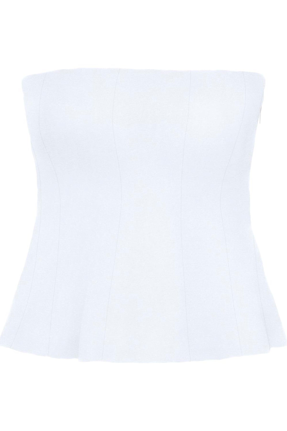Toppen er uden ærmer og har en elegant halsudskæring uden stropper, hvilket gør den velegnet til varme forårsdage eller til at styles under en jakke til en aften ude. Den skjulte lynlås i siden sørger for en diskret lukning, der bevarer det rene look.
