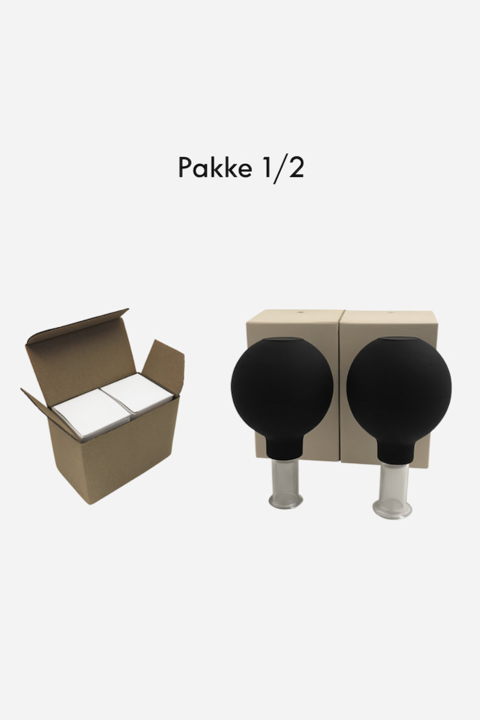 Cupping kommer i 2 pakke i den ene pakke køber du hhv. størrelse 1/2 og i den anden 3/4.