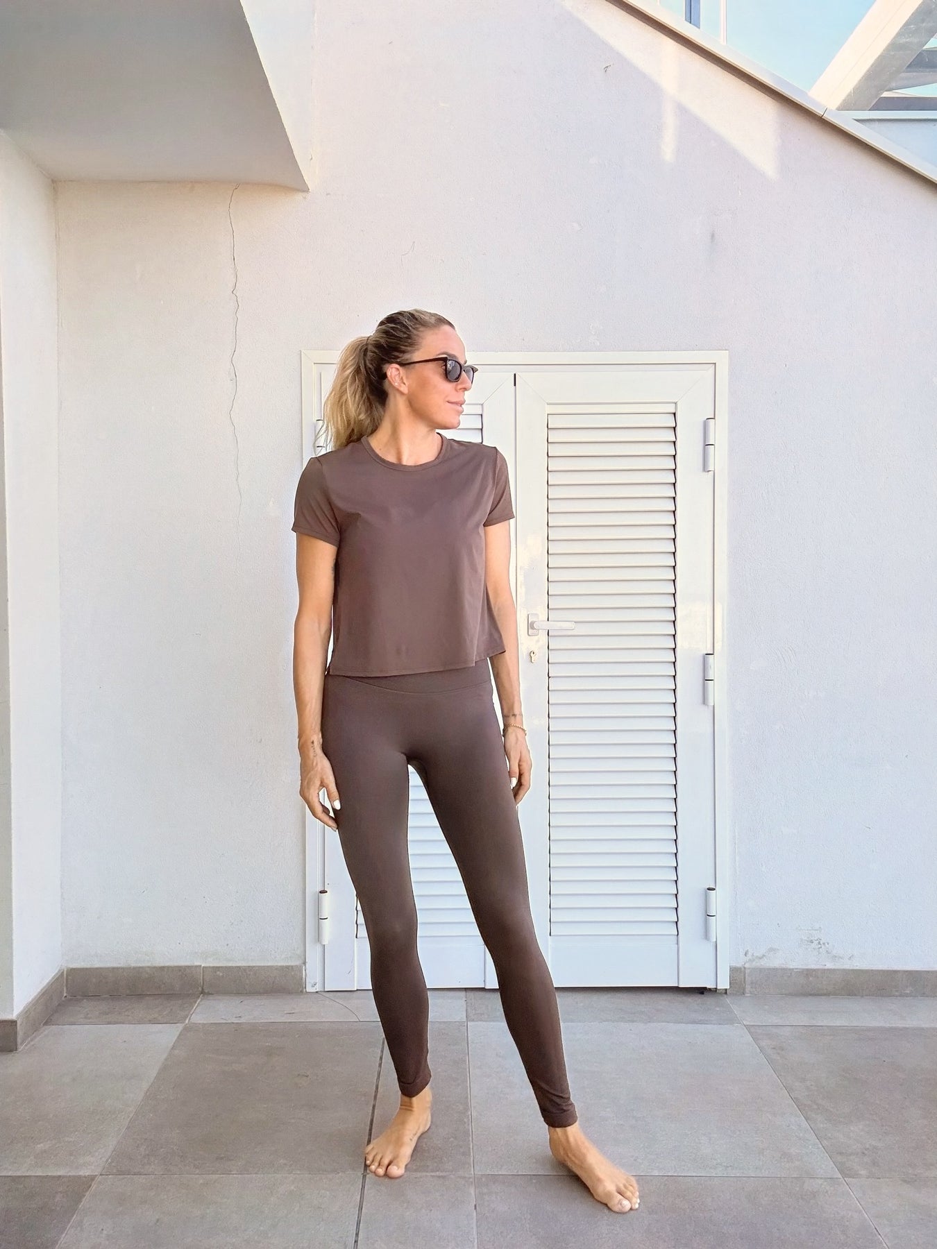 Brown T-shirt from Sassy Copenhagen with a cropped fit. The color can be matched with different outfits and is suitable for shopping or visiting a café.