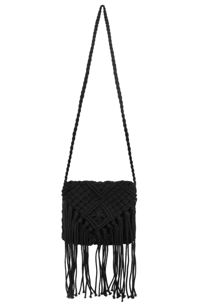 En fin taske fra Sassy Copenhagen. Kan bruges som skulder taske eller crossbody. Tasken er i et hæklet materiale med en masse frynser foran.