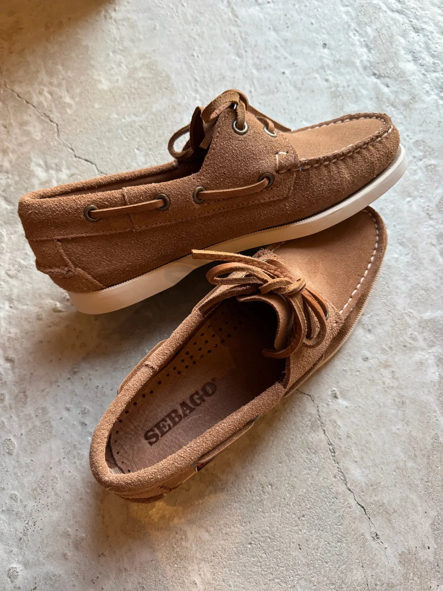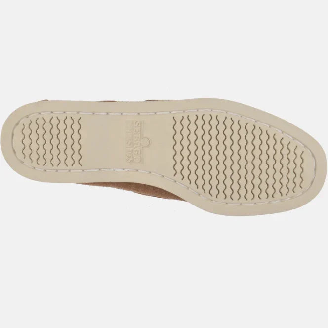 Disse stilrene, håndsyede sejlersko fra Sebago er fremstillet i ét sammenhængende stykke eksklusivt, kæmmet ruskind. Skoene er et gennemført håndværksprodukt og udstråler klassisk maritim elegance.
